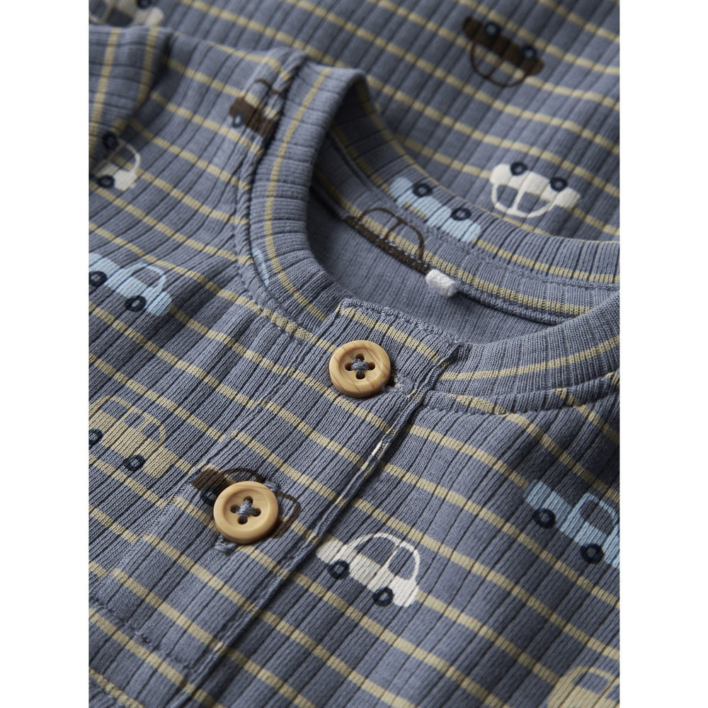Introducing the Name It Flint Stone Nbmronald Ls Body, a stylish and cozy bodysuit tailored for your child's comfort and mobility. Crafted from lightweight jersey known for its softness and stretch, this piece features a charming all-over print and long sleeves, ideal for any season. Secure yet easy to handle, it comes equipped with press stud and button fastenings for quick changes. Please note, to ensure safety, keep this garment away from fire. Perfect for daily wear, this bodysuit combines practicality with delightful design, making it a must-have in your little one's clothing collection. Closure: Button Materials: 95% Cotton - Organic, 5% Elastane Washing instructions: Maximum Washing Temperature 40°C - Normal Process Extra: The main material in this product contains a minimum of 50% organic cotton. Organic cotton is grown without the use of harmful chemicals. Organic cotton farming protects natural resources and biodiversity.