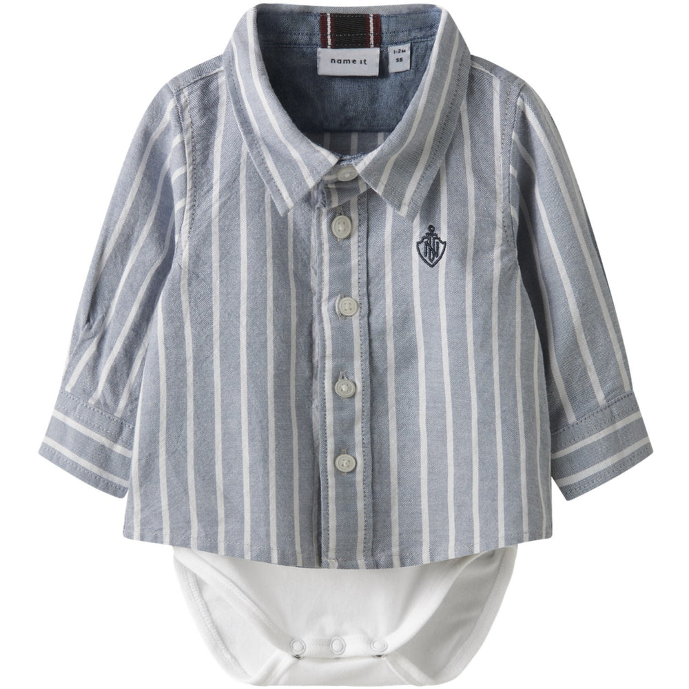Discover the charm of the Name It Flint Stone Thin Stripe - Bright White Nbmrekid Shirtbody, perfect for your little one's wardrobe. This shirtbody is crafted from the prestigious Oxford fabric, known for its durable two-toned weave and textured surface, ensuring both style and comfort. It features a classic shirt collar and long sleeves, with easy-to-use press stud fastenings for quick changes. The regular fit and striking thin stripe design make it an ideal choice for both play and special occasions. Not only does it offer a trendy look with its bright white color and subtle stripes, but it also prioritizes your child's safety with materials that are fire-resistant. Easy to care for, this piece merges practicality with the latest trends, suitable for a range of activities while ensuring your baby feels comfortable and fashionable.