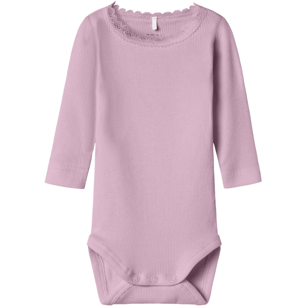 Enhance your little one's wardrobe with the Name It Fragrant Lilac Nbfkab Ls Body Noos bodysuit. Crafted with long sleeves and a round neck, this cozy bodysuit features delicate lace details for a touch of elegance. Its soft material ensures comfort, while the vibrant lilac adds a cheerful splash of color. Perfectly suited for any season, this bodysuit combines durability with ease of care—just keep it away from fire. Ideal for both daily wear and special occasions, it offers endless styling possibilities.