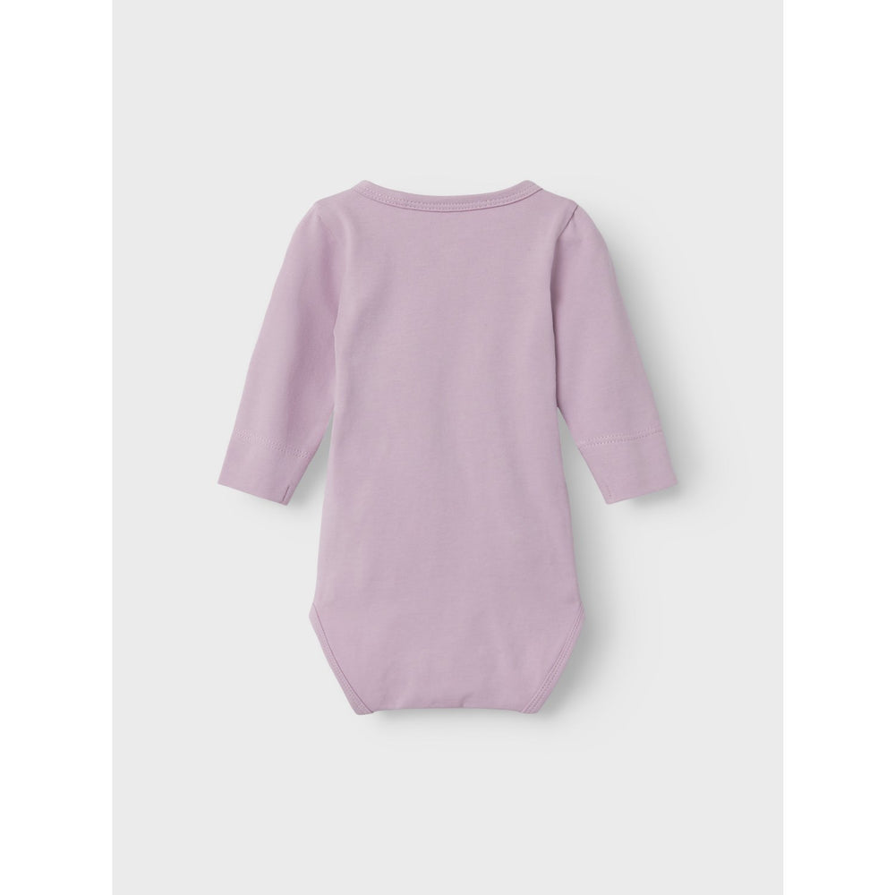 Discover the charm of our Name It Mauve Mist Nedria Wrap Body, a delightful addition to any child's wardrobe. This bodysuit features a soft jersey construction, offering both a lightweight feel and adequate stretch for uncompromised comfort and mobility. Designed with a stylish V-neck and long sleeves, it's secured with a practical press stud fastening for easy dressing. The lovely mauve hue is complemented by a gentle pigment print, adding a touch of whimsy to its appearance. Made primarily from cotton with a hint of elastane, this piece combines durability with flexibility. Ideal for year-round use, it ensures your little one stays comfortable while exploring their world. Note: Please keep away from fire.