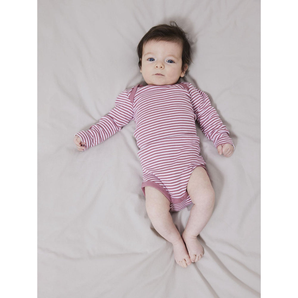 Discover the charm and comfort of the Name It Mesa Rose Body 2-Pack Core Noos, ideal for updating your child's wardrobe with styles that blend effortlessly into any occasion, any season. These bodysuits feature a cozy rib knit design with vertical stripes, ensuring elasticity and comfort, topped with a classic look. Crafted with long sleeves and an easy-to-use American neckline, each piece in this set is designed for easy dressing, thanks to the practical press stud fastenings. Available in a convenient 2-pack, these pieces are not only a stylish choice but also a practical one, perfect for daily wear. Enjoy the blend of durability, comfort, and timeless design with every wear. Materials: 51% Organic Cotton, 49% Cotton Materials and care: Wash with similar colors Washing instructions: Maximum Washing Temperature 40°C - Normal Process
