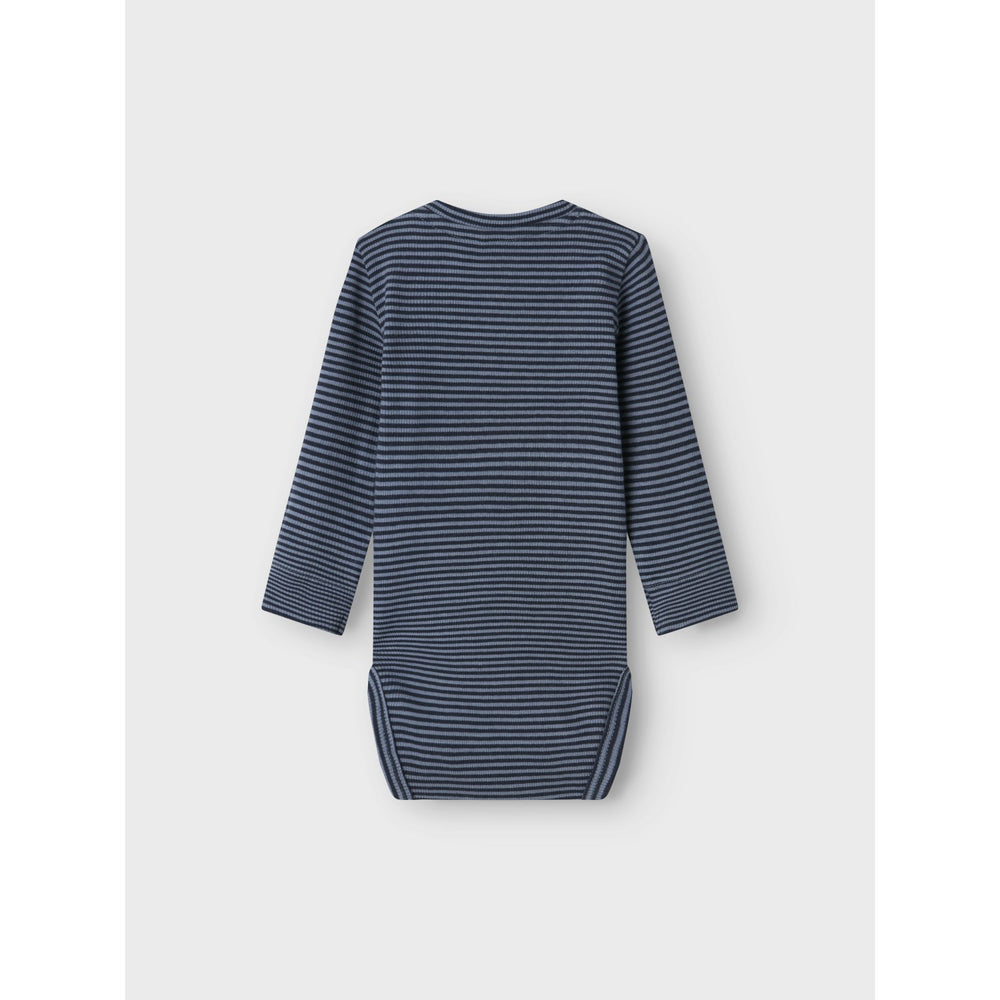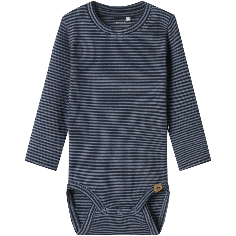 Introduce a touch of timeless style and comfort to your little one’s wardrobe with the Name It Navy Blazer Nbmberro R Ls Body. This charming bodysuit, crafted from soft, elastic rib knit, ensures a cozy fit with its round neck and long sleeves featuring fold-up cuffs. Its classic striped pattern in navy adds a sophisticated flair, while press stud fastenings make dressing hassle-free. Complete with a cute badge detail, this bodysuit is an essential for easy, stylish dressing all year round. Note: Keep away from fire.