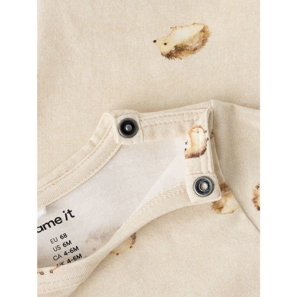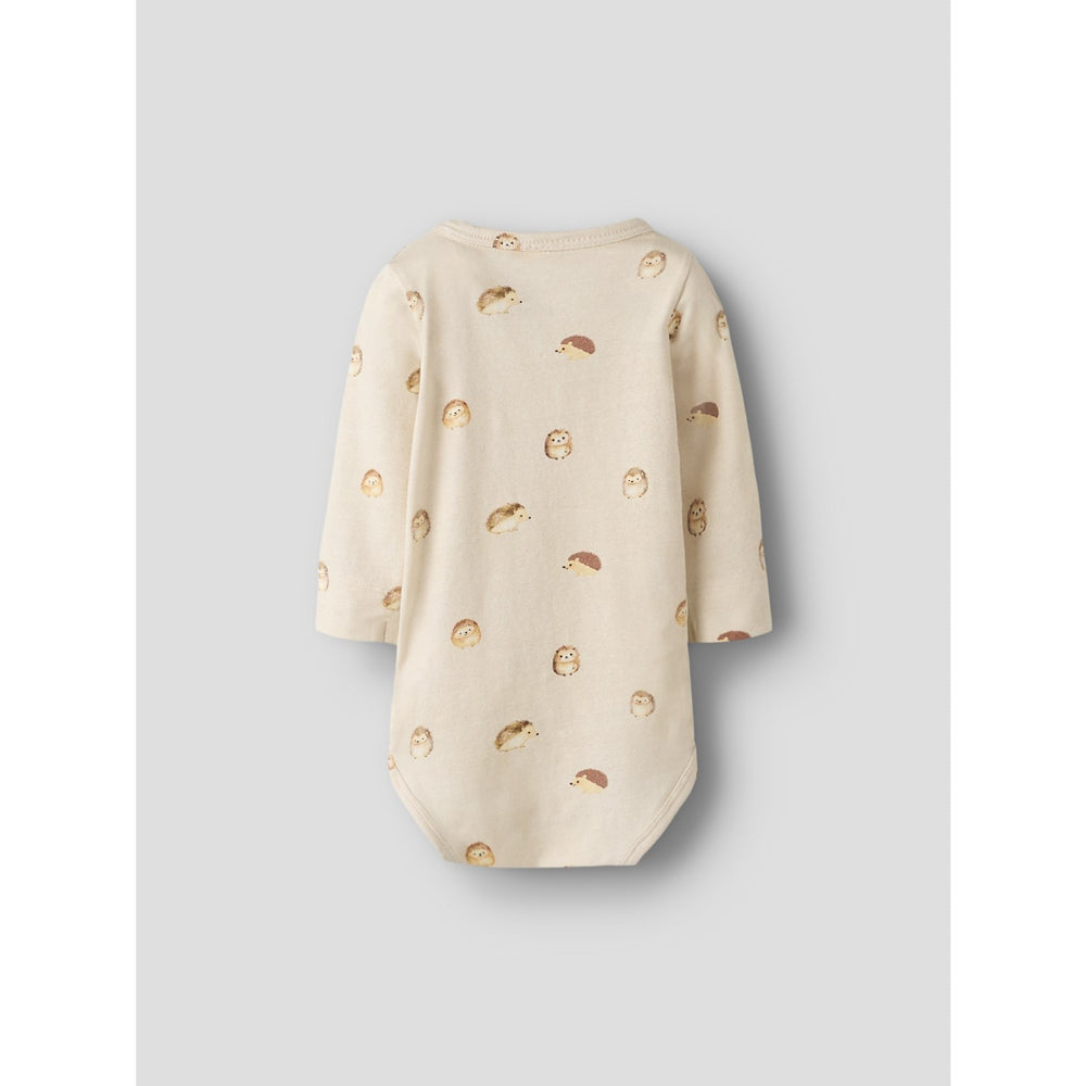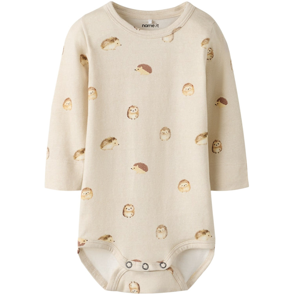 Dress your little one in the Name It Peyote Melange Nbnnille Ls Xsl Body Lnoos, a delightful bodysuit that combines style with practicality. Crafted from soft, stretchy jersey, this bodysuit ensures a comfy fit and freedom of movement, making it ideal for your child’s daily adventures. Featuring a charming all-over print, this piece is designed with a round neck and long sleeves for added coverage. The bodysuit is easy to wear, thanks to press stud fastenings at the crotch and shoulder, making diaper changes and dressing fuss-free. Available in a soothing melange color, it oozes a cool, laid-back charm. Note: Be mindful of the safety warning to keep the bodysuit away from fire. This versatile garment is an essential addition to any child's wardrobe, ensuring comfort and style year-round.