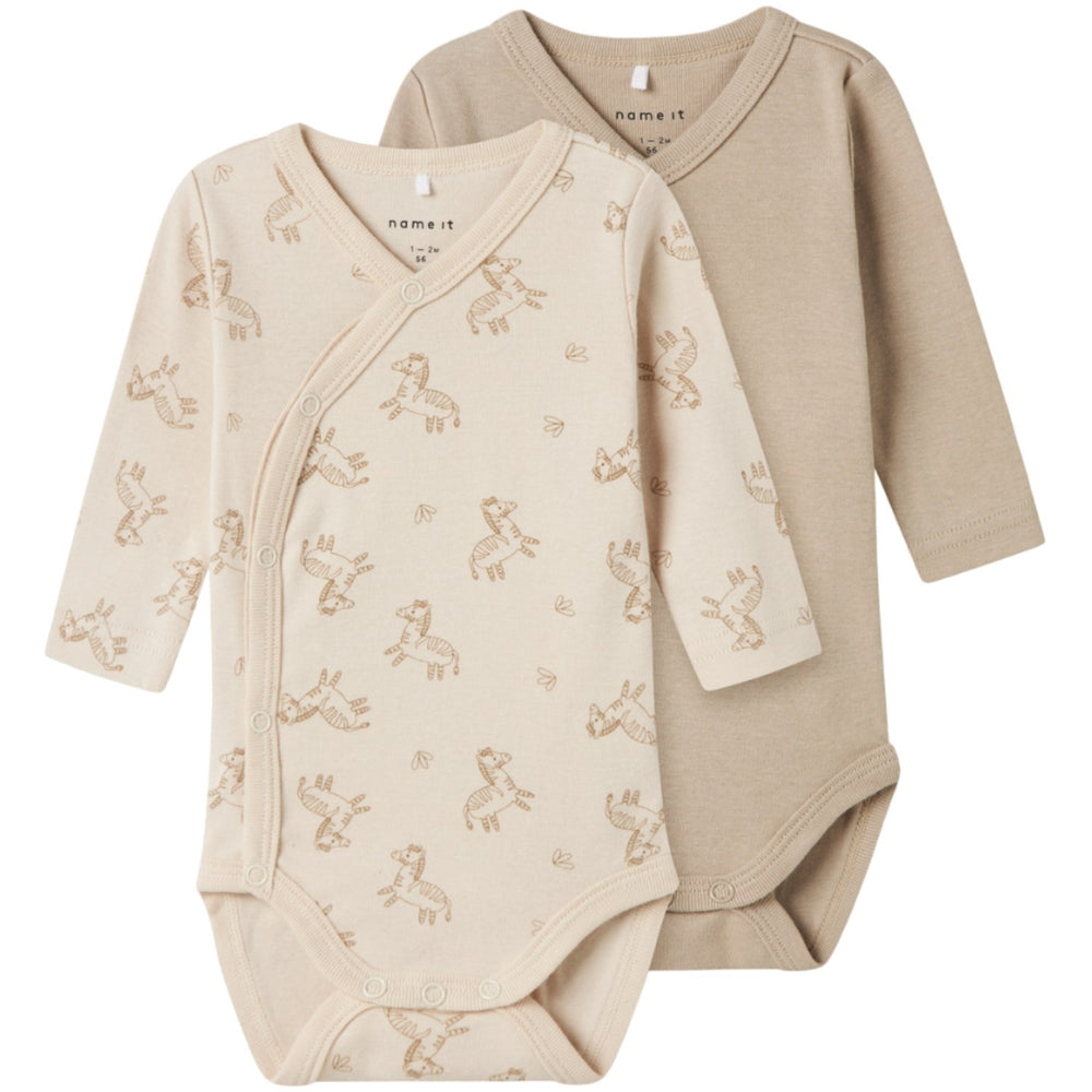 Dress your little ones in the cozy charm of the Name It Rainy Day Body 2-pack Wrap featuring an adorable Rainy Day Zebra design. These thoughtfully crafted bodysuits are made from a soft and breathable material, ensuring your child's comfort throughout their day. The stylish wrap design not only adds a touch of elegance but also makes dressing fuss-free and straightforward, which is a bonus for busy parents. Available in a serene palette that features a delightful zebra pattern, these bodysuits bring a playful vibe to your baby's wardrobe. The perfect fit is provided by carefully designed sizes that cater to your child’s needs as they grow. Each piece promises durability and easy care, which is essential for children's clothing, and can withstand frequent washes without losing its charm. Ideal for layering under other garments or wearing alone during indoor activities, these bodysuits offer versatility and warmth. They enhance your baby’s comfort, making them excellent for sleep, play, and everything in between.