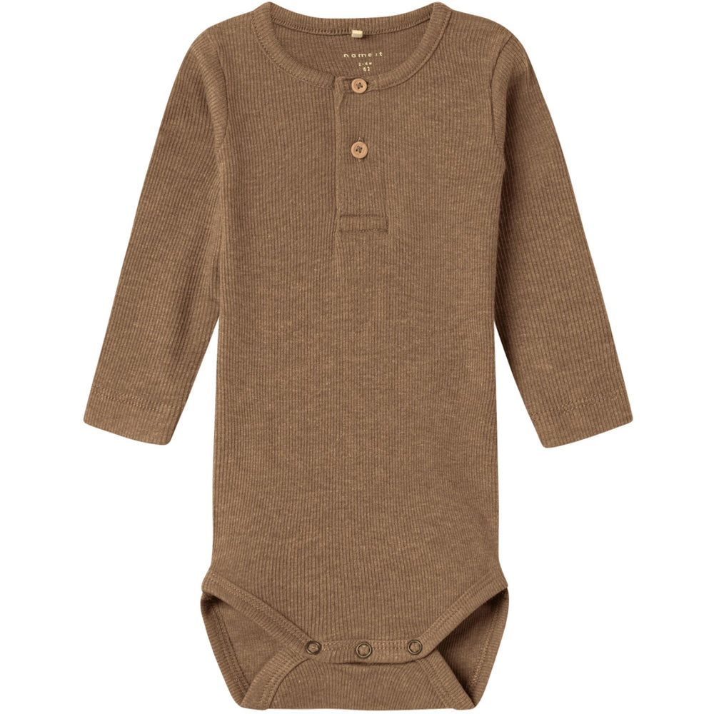 Introduce a dash of classic charm to your little one's collection with the Name It Toasted Coconut Melange Nbmkab Ls Body Noos. This bodysuit combines a cozy round neck and long sleeves, ensuring comfort in all seasons. Made with high-quality materials, it sports a timeless design that's easy to match and perfect for various occasions. The delightful toasted coconut melange color adds a subtle style that’s easy to care for, keeping maintenance simple. Please remember to keep it away from fire for safety. A must-have for every infant's wardrobe, this bodysuit promises versatility and ease of wear.