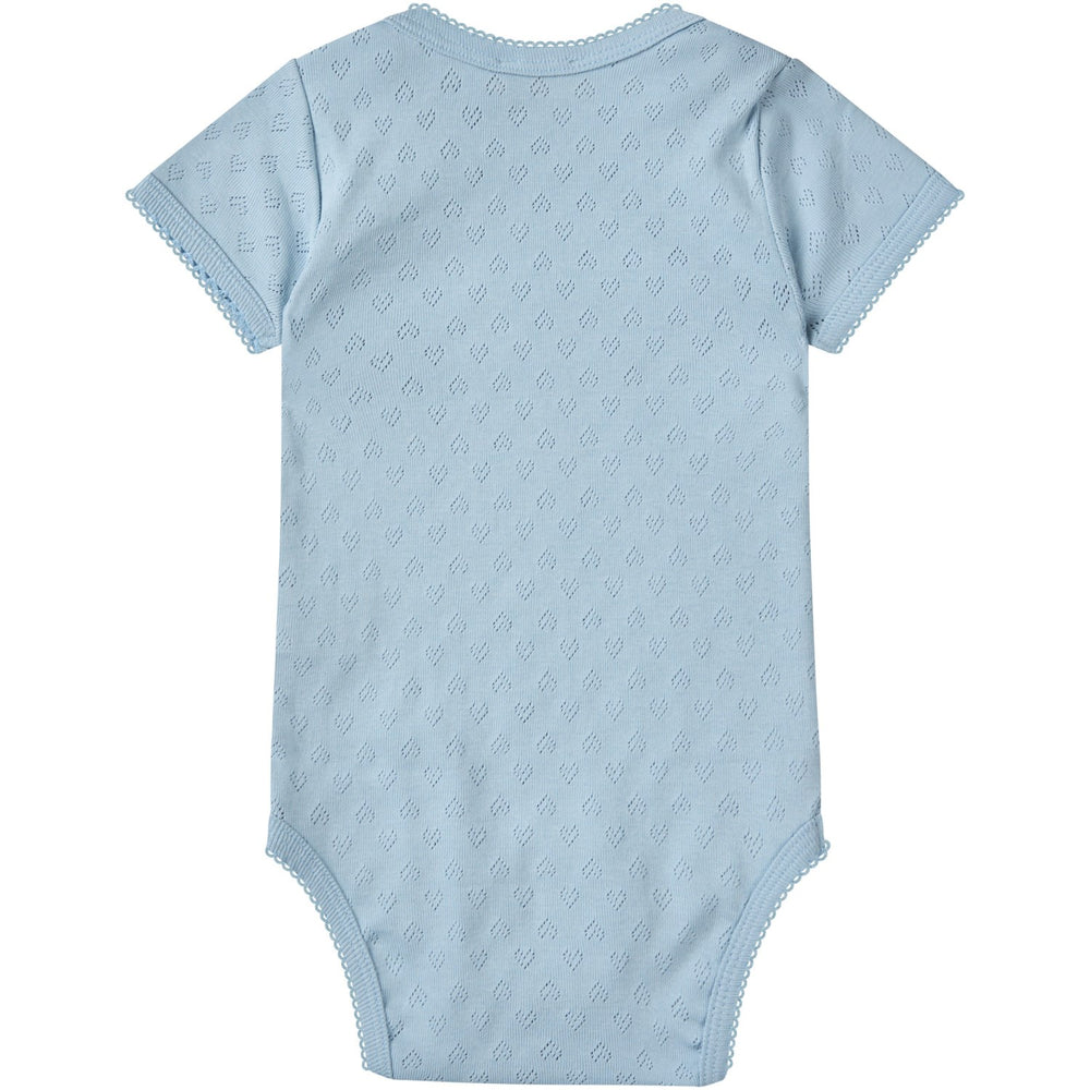 Discover the charming Dusty Blue Pointelle Heart Lapneck Bodysuit, perfect for your little one’s comfort and style. Crafted from 100% organic cotton, this bodysuit is exceptionally soft and breathable, ensuring it’s gentle on your baby’s delicate skin. It features a lovely heart-shaped pointelle pattern and comes in a serene dusty blue shade that adds a touch of sweetness to any outfit. Designed with a practical lap neck for hassle-free dressing and snap buttons for quick diaper changes, this short-sleeved bodysuit blends functionality with a cute, timeless style. Ideal for daily wear, it keeps your baby comfortable while being easy to care for, making it a must-have in your child's wardrobe.