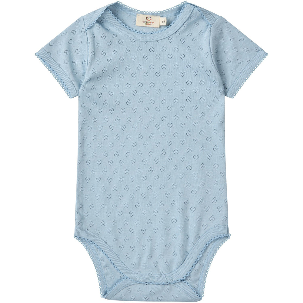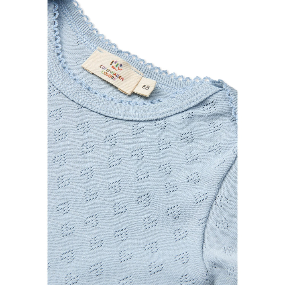 COPENHAGEN COLORS Dusty Blue Pointelle Heart Lapneck Body Ss