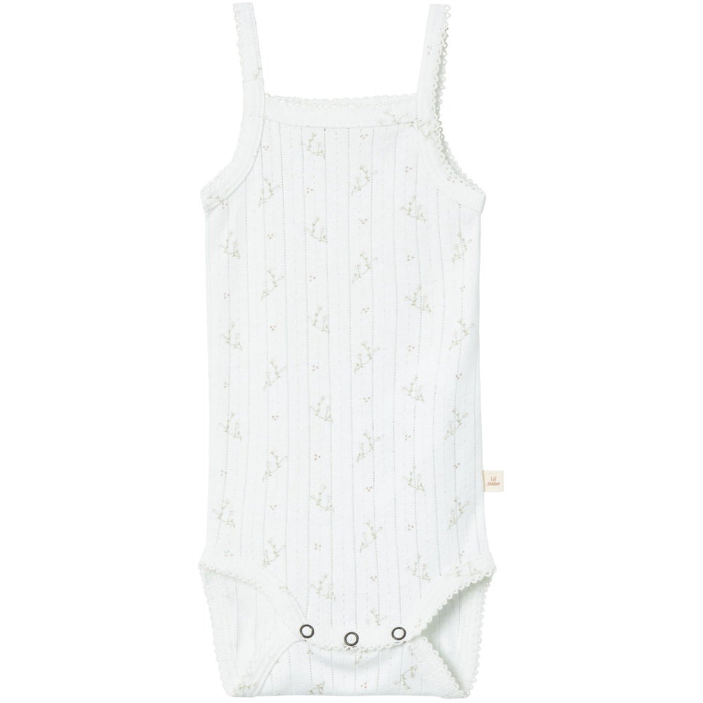 Dress your little one in style with the Lil'Atelier Coconut Milk Rachello Deb Slim Strap Bodysuit! This trendy piece features a U-neck and shoulder straps with a press stud fastening for easy dressing. Made with a mix of organic cotton and TENCEL™ modal fibers, it's not only soft on your child's skin but also eco-friendly. The playful Needle drop design adds a cute touch to this versatile bodysuit, perfect for mixing and matching with other pieces for a comfortable and stylish look. Create a trendy outfit for your little fashionista with this sustainable and adorable bodysuit.