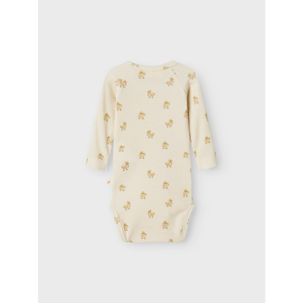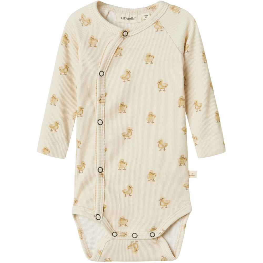 Introducing the charming Lil'Atelier Turtledove Duck Lavo Emo Slim Wrap Body, the perfect addition to your child’s wardrobe. Crafted with luxurious jersey material, this bodysuit combines a lightweight, stretchable quality with a soft inner surface, ensuring maximum comfort and freedom of movement for your little one.