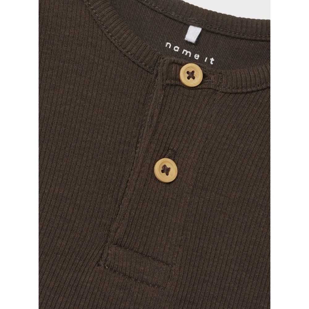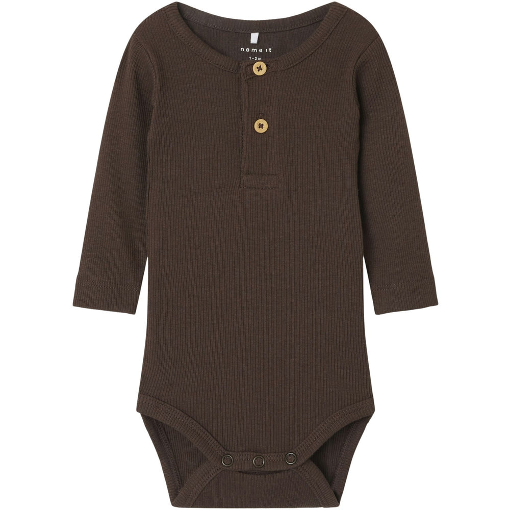 Welcome to the coziest addition to your little one's wardrobe: the Name It Bracken Kab Body Noos Bodysuit! Crafted from soft, breathable fabric, this bodysuit guarantees comfort and easy movement for infants. Featuring a classic round neck and long sleeves, it combines practicality with a touch of adorable style.