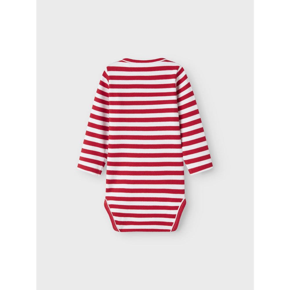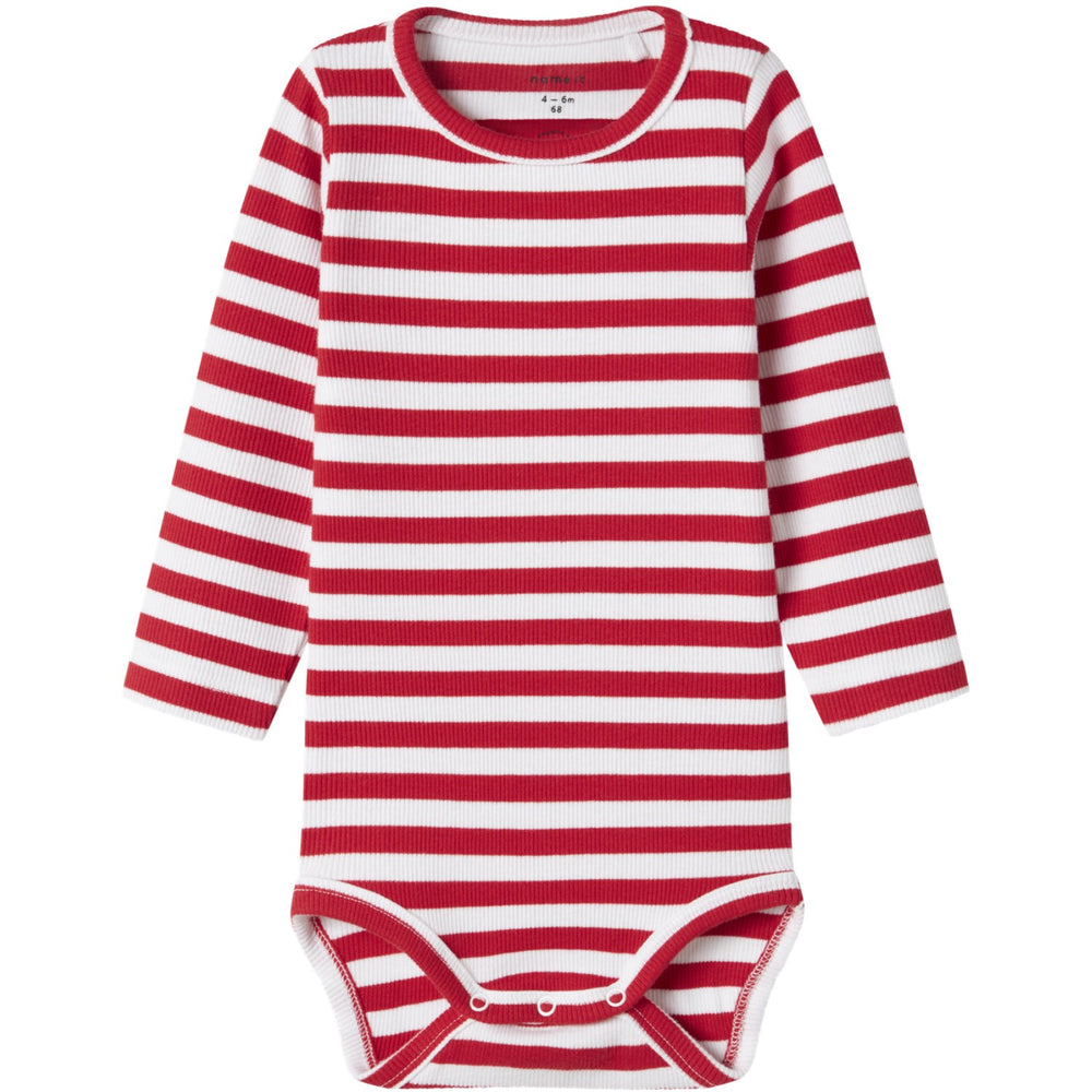 Dress your little one in the Name It Bright White Cinese Red Folisa Body, a bodysuit designed for comfort and style. Crafted with a rib knit design, this item offers excellent elasticity and a classic striped pattern, enhancing its timeless charm. Available in vibrant colors, it features a round neck, long sleeves, and convenient press stud fastenings for easy dressing. Ideal for year-round wear, this bodysuit is both functional and fashionable, making it a must-have addition to any child's wardrobe. Plus, it's important to keep this garment away from fire for safety.