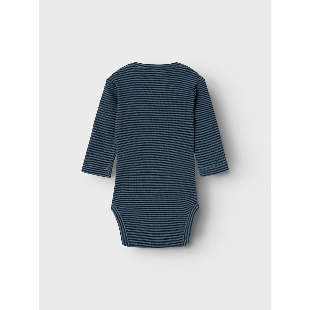 Introducing the "Name It Dark Sapphire Lakkin Body" - an essential bodysuit that blends softness with practicality, ideal for all-year-round use. Crafted from rib knit material featuring a vertical striped pattern, it ensures elasticity and comfort while maintaining a classic appeal. Available in a dark sapphire tone, the design includes a round neck, long sleeves, and easy press stud fastenings for quick changes. Adorned with a distinct badge for an extra touch of style, this bodysuit promises durability and ease of care, perfect for the active child. Embrace both style and functionality with this must-have addition to your child's wardrobe.