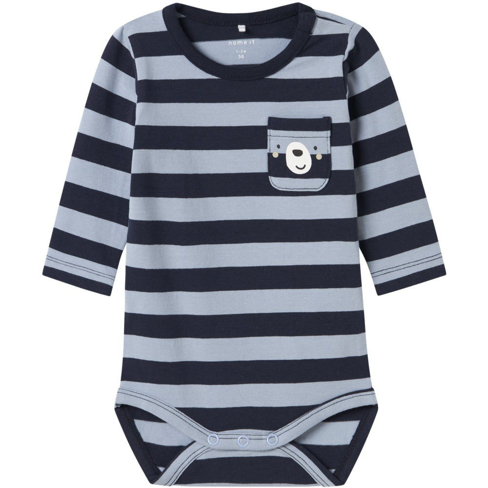 Discover the charm of our Name It Dusty Blue Nbmking Ls Body, a delightful addition for any little one's clothing collection. Crafted from jersey, this bodysuit offers a gentle touch with its soft interior and exterior, ensuring your child enjoys comfort and flexibility day in, day out. It features a classic round neck and long sleeves, ideal for any season. The convenient press stud fastening and a cute chest pocket add functional flair. Keep in mind, for safety, keep this adorable garment away from fire. Ideal for both playtime and naptime, it combines style, comfort, and practicality seamlessly.