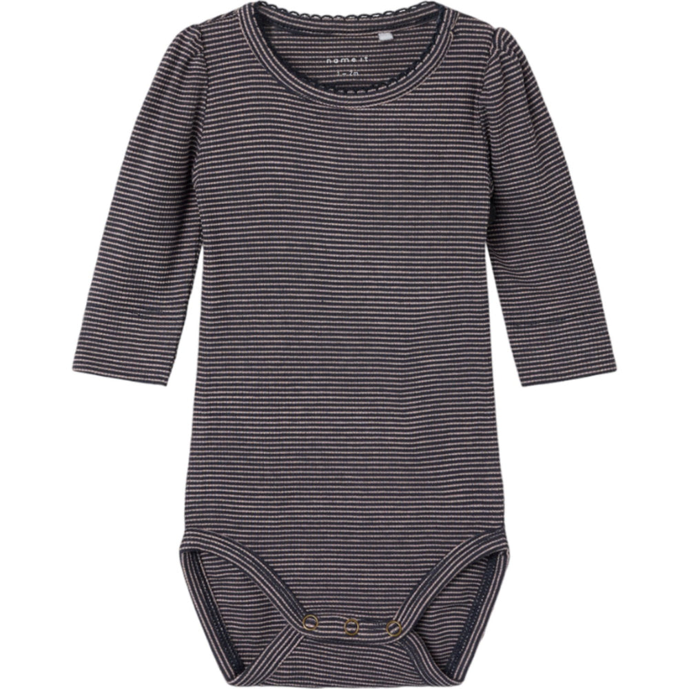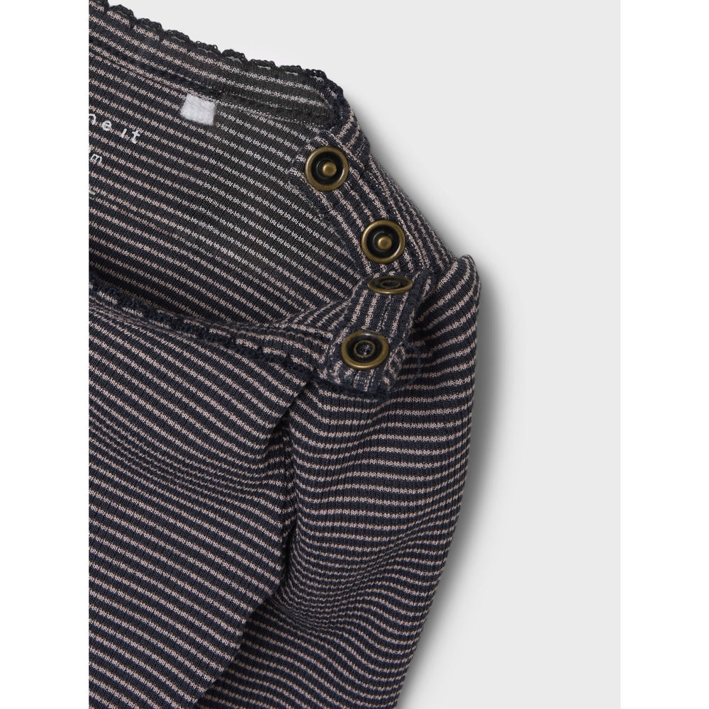 Explore the delightful Name It Inkwell Odina Body, a perfect addition to your little one's closet! Designed for comfort and style, this bodysuit features a soft rib knit with a classic striped pattern, enhancing both durability and elasticity. The charming puff sleeves and round neck amplify its timeless appeal, while the press stud fastening ensures easy dressing. Its detailed stitching adds a touch of elegance, making it an ideal choice for year-round versatility and comfort.