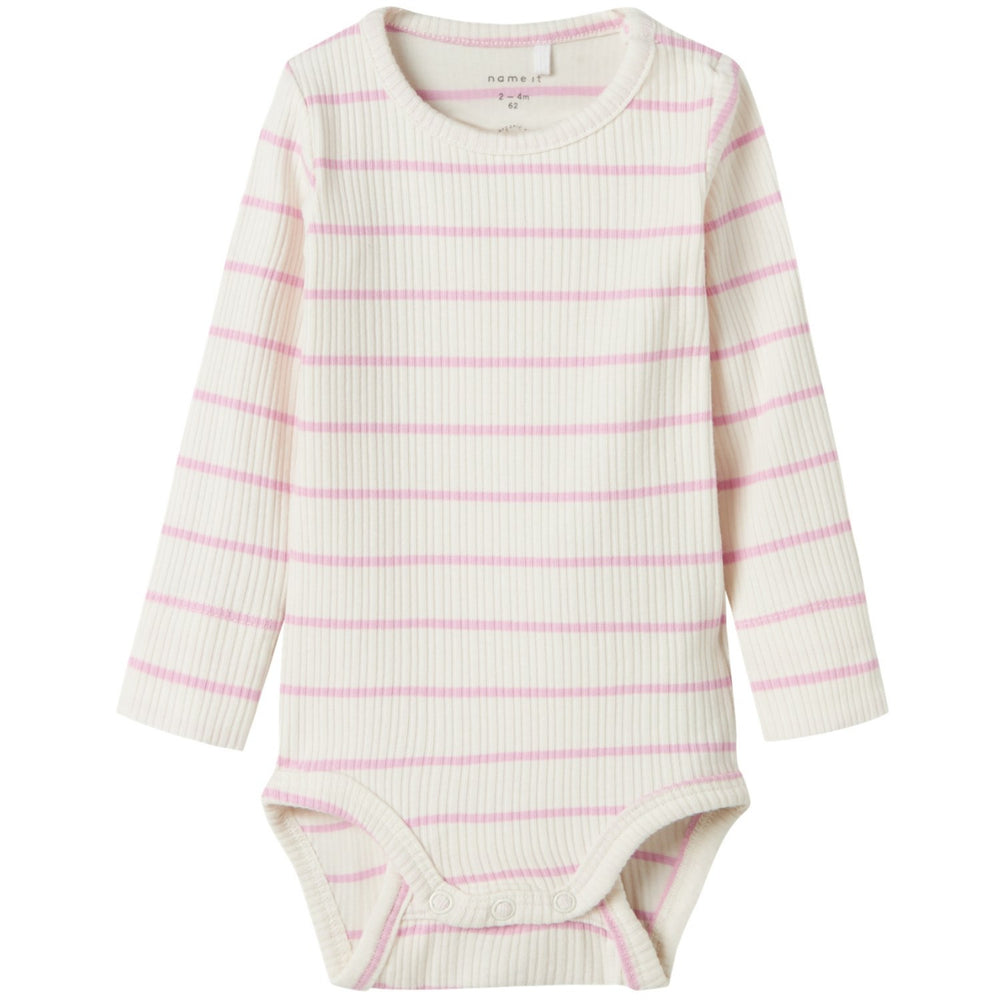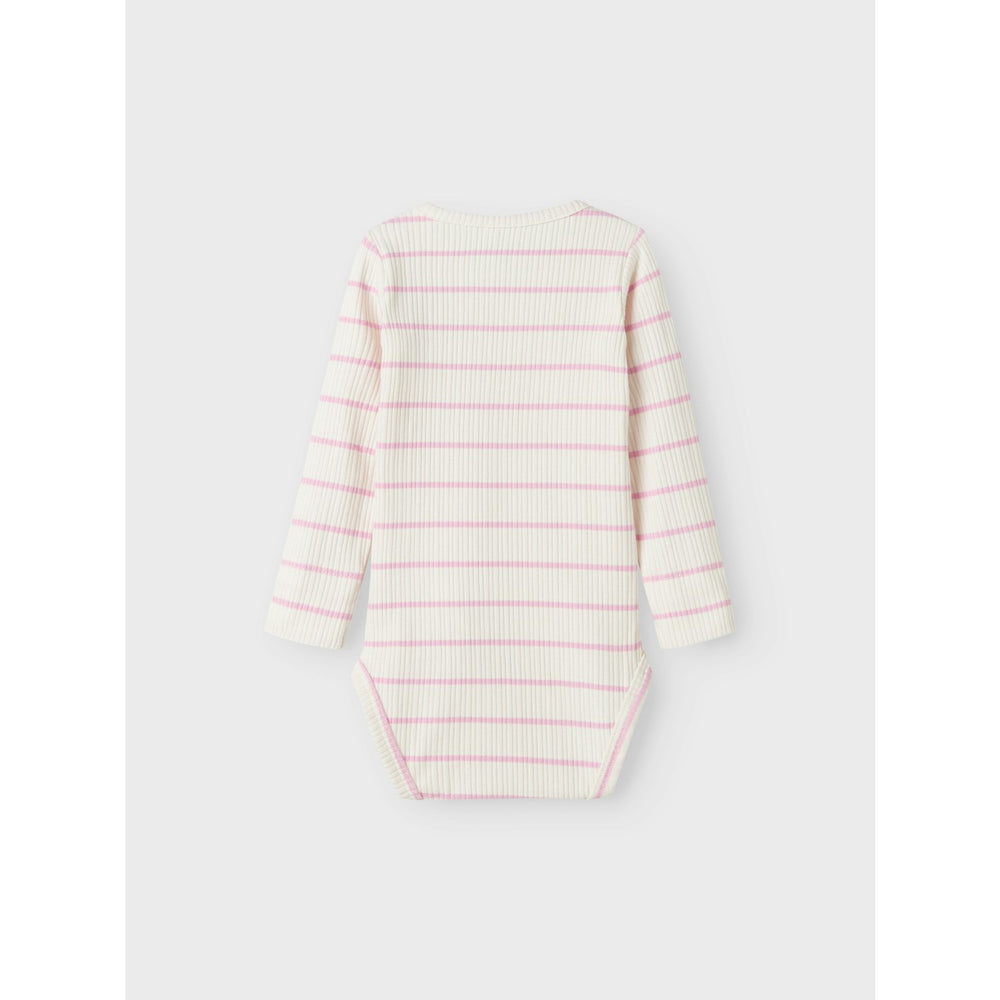 Keep your little one looking stylish and feeling comfortable in the Name It Jet Stream Kianna Body bodysuit! Made from soft rib knit with a striped pattern, this bodysuit features long sleeves, a round neck, and press stud fastening for easy dressing. The fun print repeated across the entire surface adds a playful touch to their outfit. Versatile and cozy, this bodysuit is perfect for year-round wear. Make sure your child has this timeless piece in their wardrobe for endless styling options!