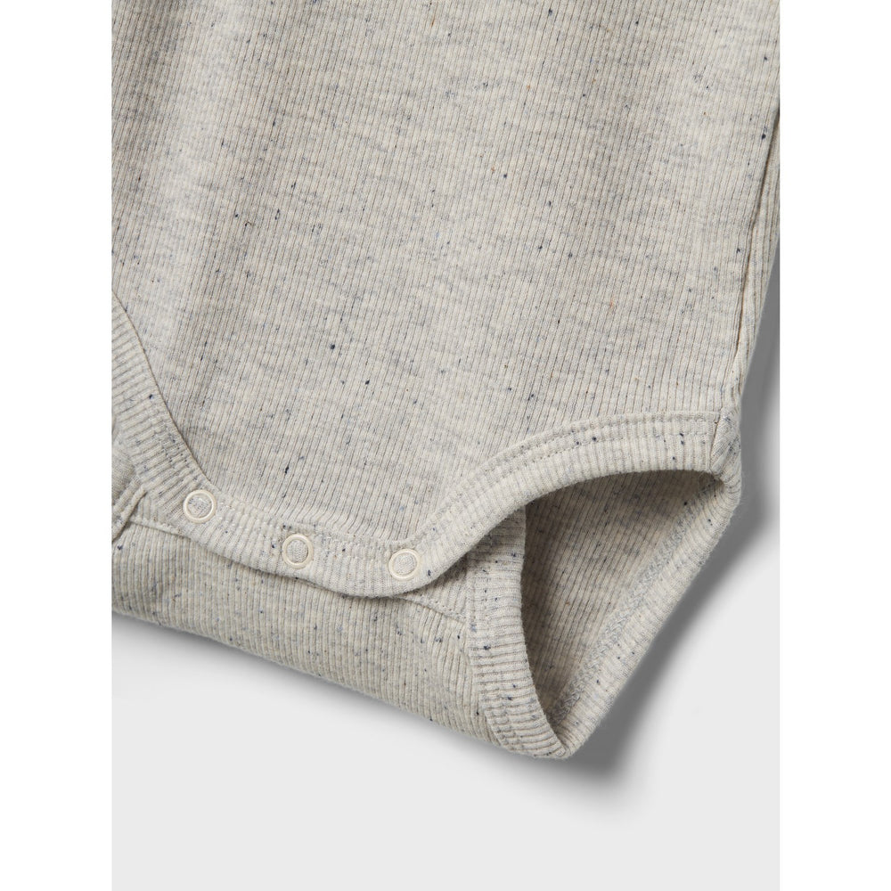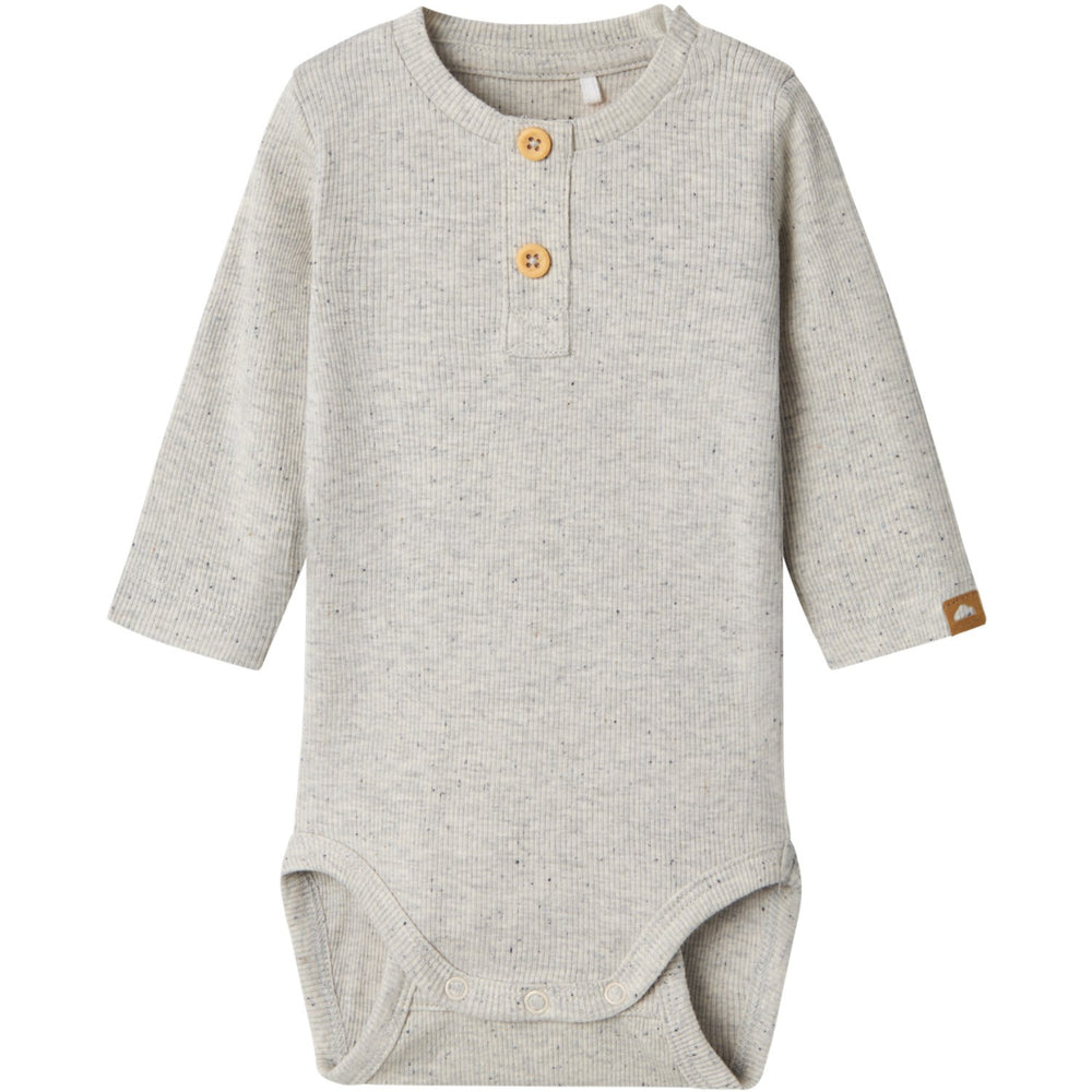 Introducing the Name It Peyote Melange Bryan Body, an essential piece for your child's all-year-round wardrobe. Crafted from rib knit, this bodysuit boasts a vertical, striped pattern enhancing its timeless look, while offering exceptional elasticity for ultimate comfort. The grandad neck and long sleeves add a touch of classic style, combined with practical press stud fastening for easy dressing.