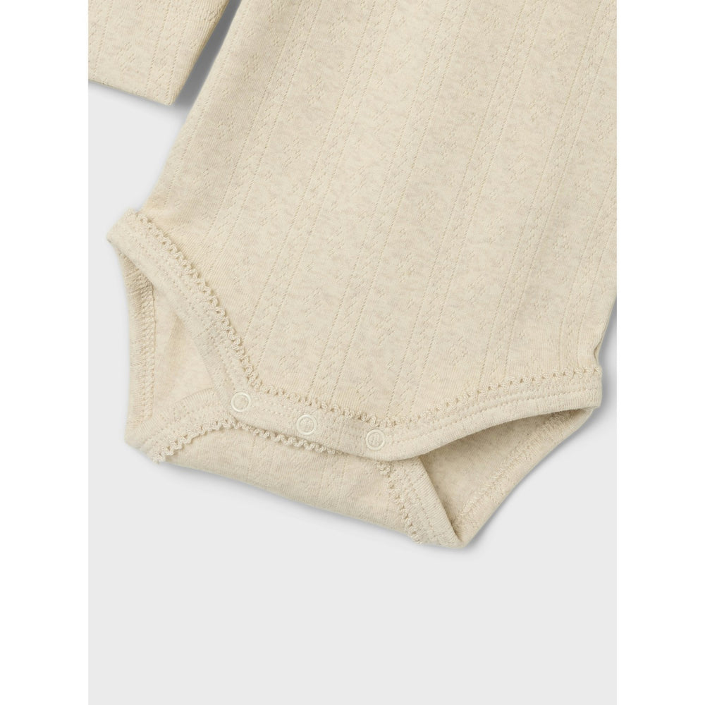 Introduce your little one to the cozy comfort of the Name It Peyote Melange Nigela Slim Body bodysuit, perfect for babies who love to move and play. Crafted with care from a soft and durable fabric blend, this slim-fit bodysuit wraps your child in comfort throughout the day. As stylish as it is comfortable, it features a subtle melange pattern in a soothing gray tone, seamlessly blending with any wardrobe.