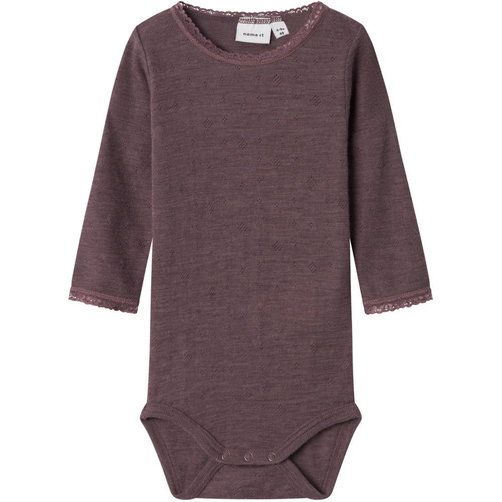 Introducing the Name It Sparrow Wang Wool Needle Body Solid Noos, a charming bodysuit that combines style and comfort for your little one. Crafted from soft, cozy wool, this piece is perfect for year-round wear. It features a unique needle drop design with dropped stitches that create adorable patterns, complemented by delicate lace details. Available with long sleeves and convenient press stud fastening in the crotch for sizes up to 86, this bodysuit fuses functionality with a cute look. The solid color enhances its versatility, making it a valuable addition to any child's wardrobe. Ideal for everyday use, it promises ease of movement and simplicity in care, ensuring your child stays comfortable and stylish. Materials: 100% Merino Wool Materials and care: Max shrinkage 8%. Only use silk or wool detergent Washing instructions: Maximum Washing Temperature 30°C - Gentle Process