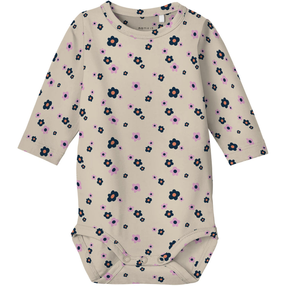 Introduce your little one to comfort and style with the Name It Summer Sand Flowers Vandora Body. Crafted from soft, stretchy jersey, this bodysuit features a charming sand flower pattern, long sleeves, and a round neck. It's easy to wear with press stud fastenings and ensures freedom of movement. Ideal for both playtime and naptime, this trendy bodysuit blends functionality with a cute, eye-catching design.