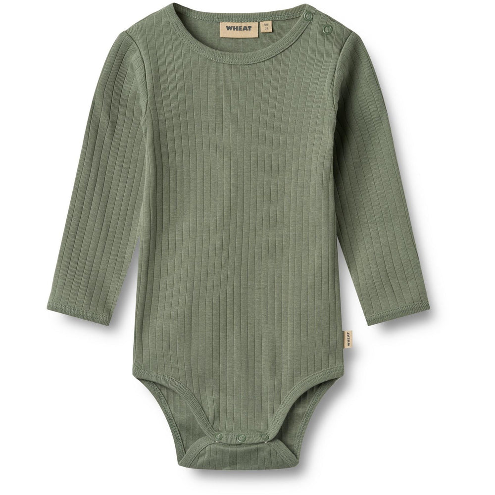 Discover the comfort and style of the Wheat Dusty Green Body L/S Berti, a must-have for your little one's wardrobe. Crafted from 100% organic cotton, this long-sleeved bodysuit ensures a soft and gentle touch against your baby's skin, meeting the rigorous Standard 100 by OEKO-TEX® for safety and quality. Its regular fit and ribbed structure provide a cozy yet flexible wear, perfect for active infants. The charming dusty green hue and unisex design make it a versatile choice for any baby, easy to mix and match with different outfits. Functional features include practical press buttons at the left shoulder and crotch, simplifying dressing and diaper changes without compromising on your baby's comfort. As a GOTS-certified product, this bodysuit not only cares for your child but also the environment. Ideal for layering or wearing alone, the Wheat Dusty Green Body promises both style and ease for day-to-day adventures.