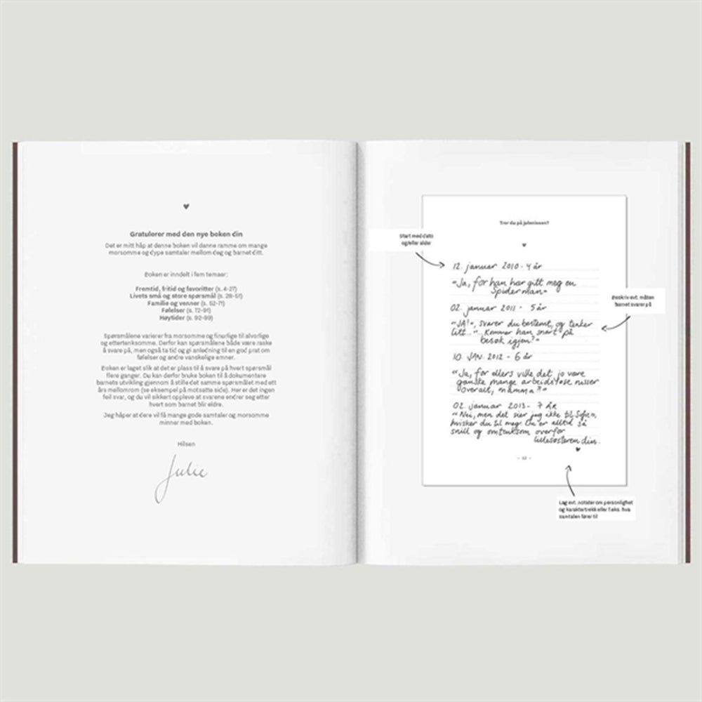 Discover the delightful WITHWHITE Spørreboken A5, a charming Norwegian baby book designed to capture and cherish all your little one's precious memories. Perfectly safe and suitable for children, this book offers an engaging way to document milestones. Its durable A5 size makes it easy to handle and store, ensuring it stands the test of time as your child grows. Ideal for fostering early learning through reflection and storytelling, this memory book makes both a thoughtful gift and a treasured keepsake.