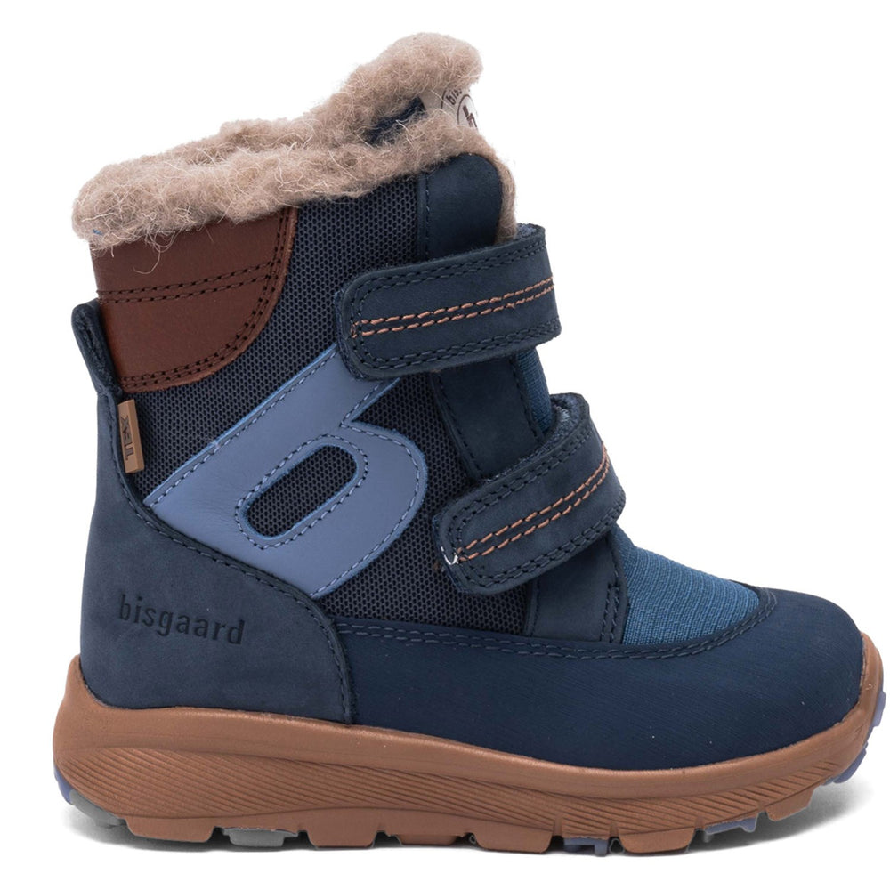 Explore the great outdoors with your little ones in complete comfort with the Bisgaard Navy Spencer Tex Winter Boots. Crafted with top-notch 100% LWG-certified leather, these boots offer a sporty, durable design that's perfect for active children. The combination of textile and breathable leather not only provides a premium appearance but also ensures high quality and durability. The boots feature a lightweight, waterproof TEX membrane that effectively blocks moisture, making sure little feet stay dry and comfy during damp conditions. For added warmth, a soft wool and textile lining along with a removable wool insole adapt to varying temperatures to maintain a cozy environment without causing overheating. The flexible, non-slip rubber sole delivers reliable traction for safe play on slippery surfaces, and the double adjustable Velcro straps make these boots easy to put on and take off, ensuring a snug and secure fit. Ideal for winter escapades in the park or a chilly day at school, the high shaft of the boots offers extra protection against cold and snow, keeping your child’s feet and ankles well-insulated.