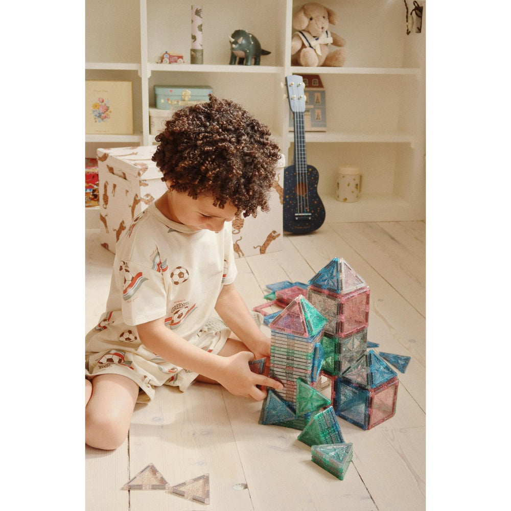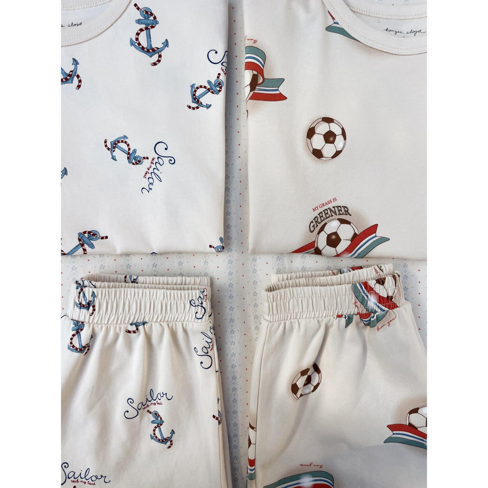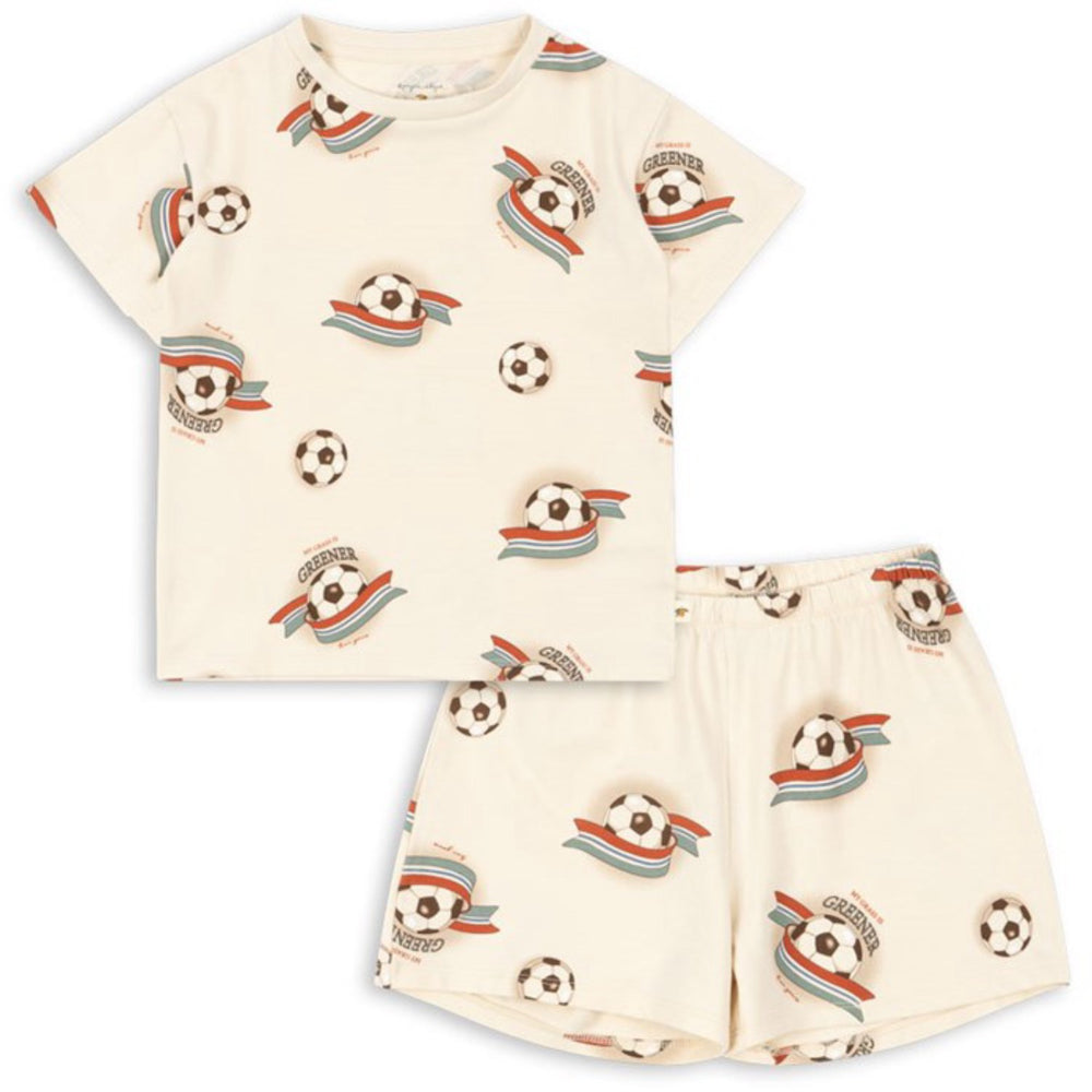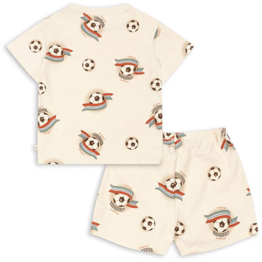Dress your little one in the Konges Sløjd Kick It Basic Set, crafted from 95% organic cotton and 5% elastane for ultimate comfort and flexibility. This charming set, featuring a coordinating tee and shorts, comes in delightful patterns and soothing colors. Not only stylish and comfy, but it's also easy to care for and durable, thanks to its GOTS-certified organic materials. Perfect for a comfortable night's sleep or for playing around the house, this set ensures your child stays cozy and cute.