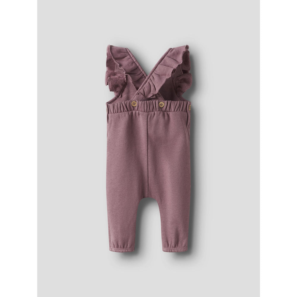 Dress your little one in the charming Lil'Atelier Nostalgia Rose Nbfkilano Ros Loose Sweat Overall, crafted from soft, stretchy jersey for ultimate comfort and mobility. This delightful piece features a loose fit with adorable ruffles and a practical front pocket. It's designed with both button and press stud fastenings for easy dressing. Eye-catching yet functional, this overall is ideal for both playtime and relaxation, ensuring your child looks great and stays comfortable all day long. Please note: Keep away from fire.