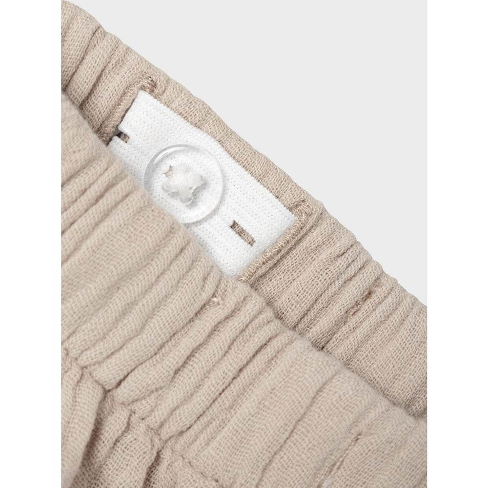 Introduce a burst of vibrancy and comfort into your little one's collection with our Name It Pure Cashmere Osafi Pants. Perfect for the energetic days of spring and summer, these trousers are crafted from 100% organic cotton, ensuring both sustainability and gentleness on your child's skin. The classic woven fabric features a subtle criss-cross pattern adding a touch of sophistication. With an elasticated and adjustable waist, these mid-waist, round-fit trousers offer a snug yet adaptable fit, ideal for growing children. The elasticated hems boost mobility, making them perfect for both playground adventures and relaxed days at home.