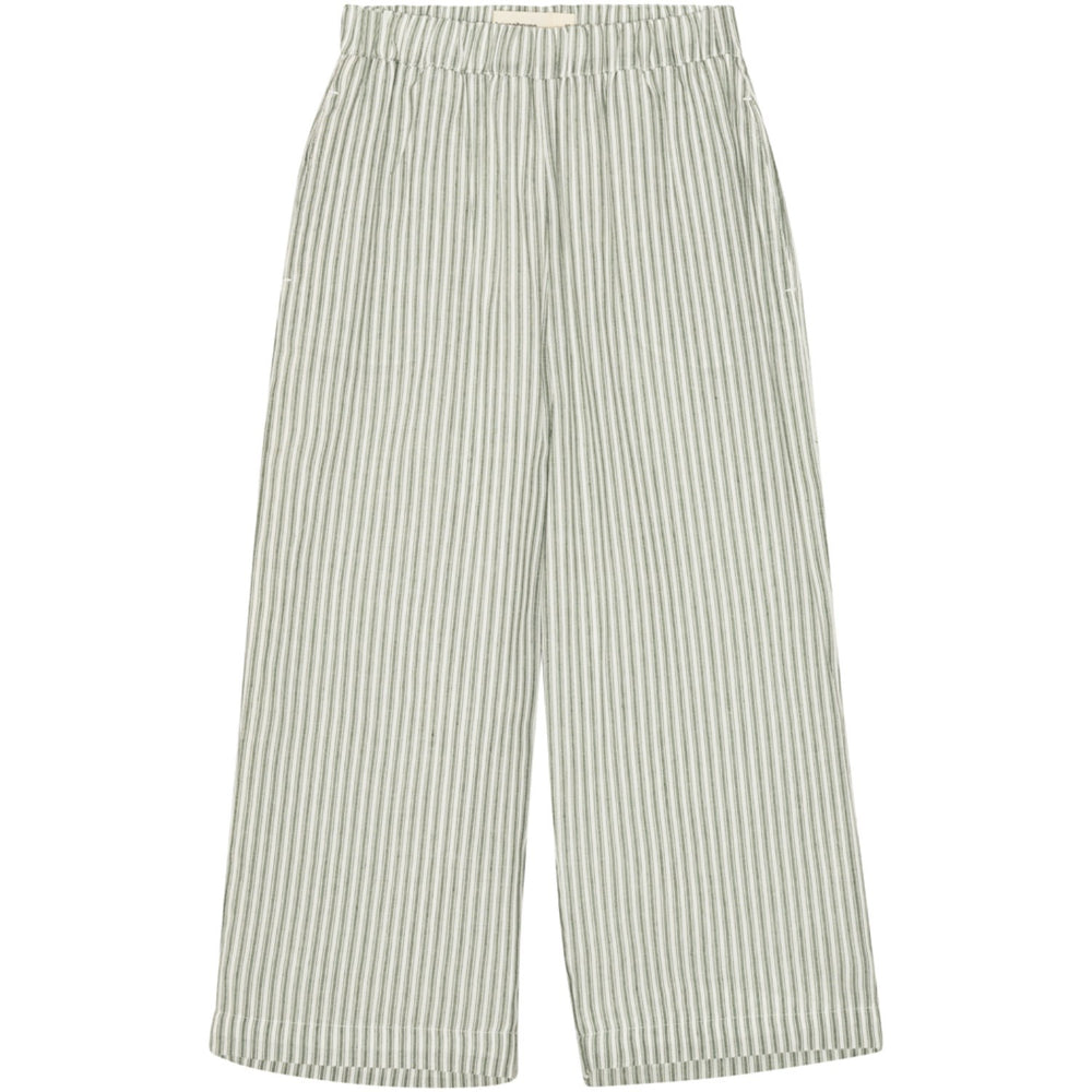 Introducing the Francis Stripe Pants from the brunobruno nation collection - a delightful choice for your little one. Crafted from light and soft organic cotton, these relaxed-fit, wide-leg pants feature a charming agave green stripe design. They offer a loose fit and gathered waist, ensuring maximum comfort. The pants are further enhanced by a thin cotton lining, promoting added comfort and better wearability. Ideal for any activity, these stylish pants are perfect for both play and relaxation, easily becoming a go-to in your child's wardrobe. Effortlessly blend fashion and functionality with these effortlessly stylish pants. Materials: 100% Organic Cotton