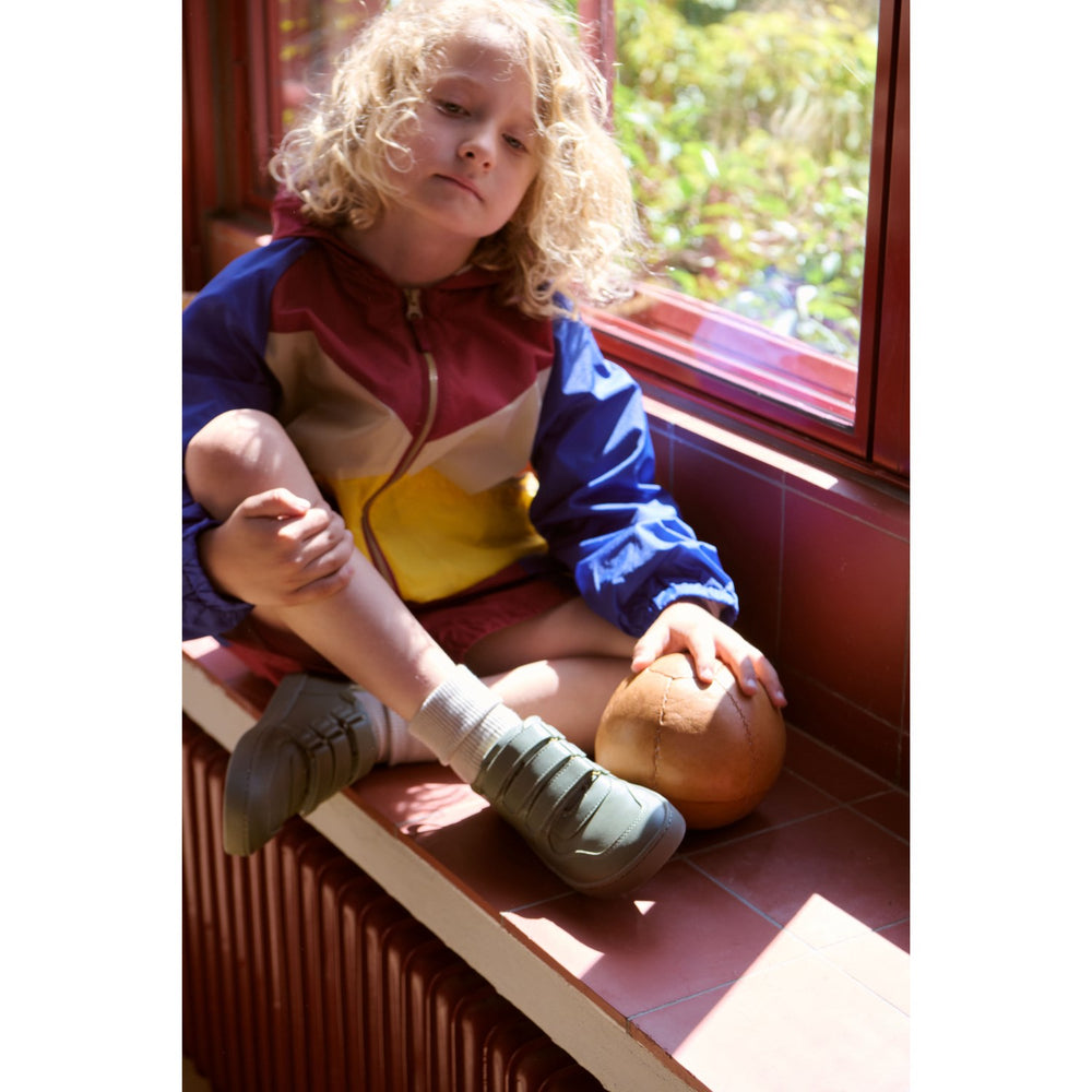 Introducing the Bundgaard Army Coda: ideal indoor shoes and slippers tailored for young explorers. Crafted from LWG-certified leather, these shoes are not only stylish with their modern, minimalistic design and sporty colored rubber soles but also prioritize your child's health by being free from harmful chemicals. They feature a wide fit and removable microfiber insoles, ensuring a comfortable and adaptive fit. With a durable rubber sole and easy-to-use Velcro closure, Coda shoes offer both longevity and independence, enabling kids to easily wear and adjust their footwear. Designed as a barefoot shoe, they promote a natural foot position and better balance, making them perfect for all-day play and growth. An added benefit of breathability comes from the mesh lining, keeping little feet cool and comfortable during their activities. Whether it's for regular indoor use or exploring new environments, these shoes are crafted to keep up with your child's active lifestyle while ensuring comfort and proper foot development.