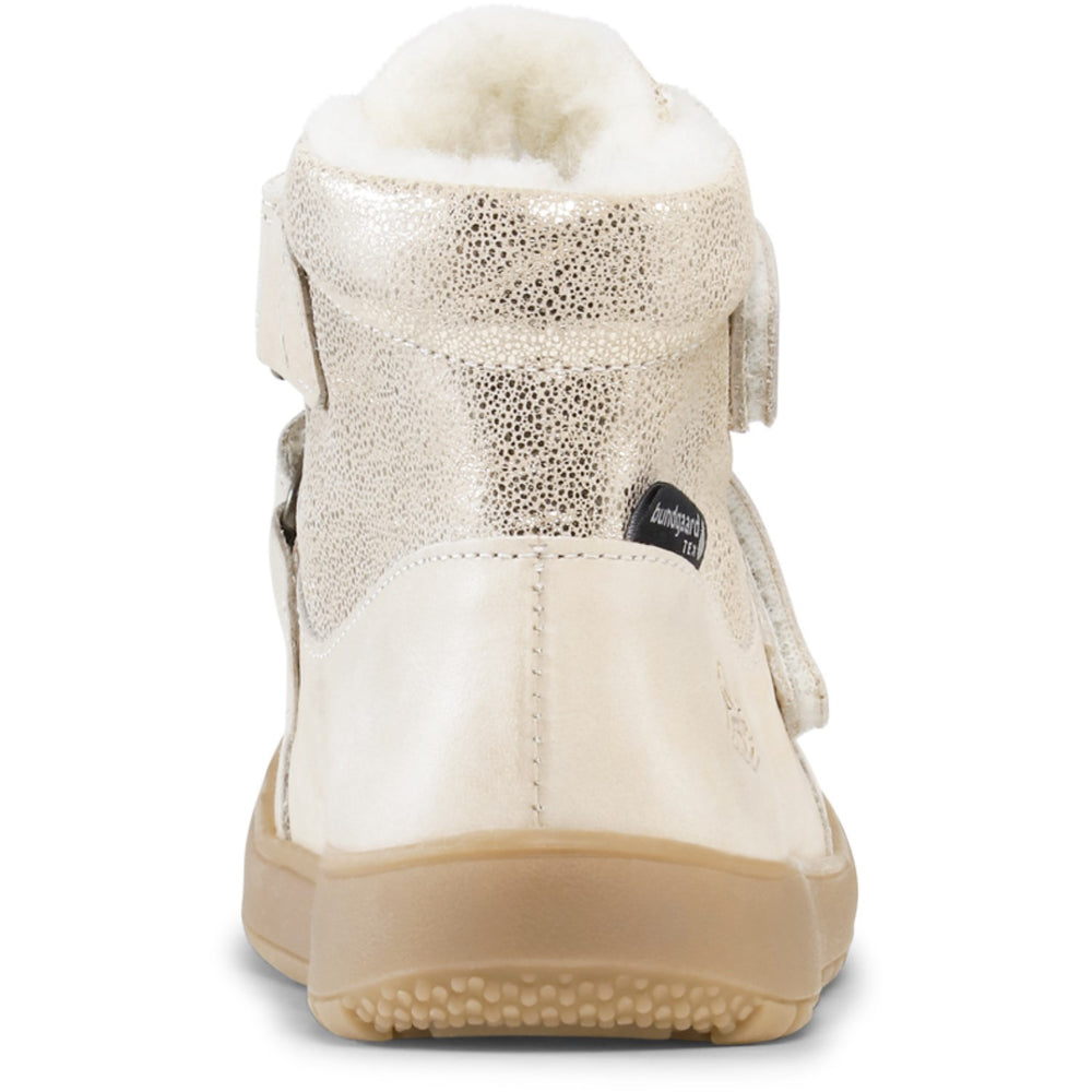 Step into winter with style and comfort with the Bundgaard Ivory Glitter Siggi Winter Boots! Crafted from high-quality leather with suede accents, these adorable boots are perfect for toddlers who are ready to brave the chilly season. Featuring a warm wool lining and a waterproof TEX membrane, these boots ensure little feet stay cozy and dry. The sturdy toe cap adds durability and protection, while the flexible Velcro closure offers an adjustable, snug fit, making them easy for little hands to put on and take off. Designed for optimal stability, the TPR outsole maintains its grip even in cold temperatures, promoting safe and secure adventures.