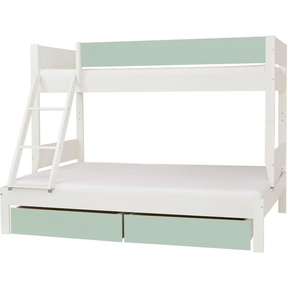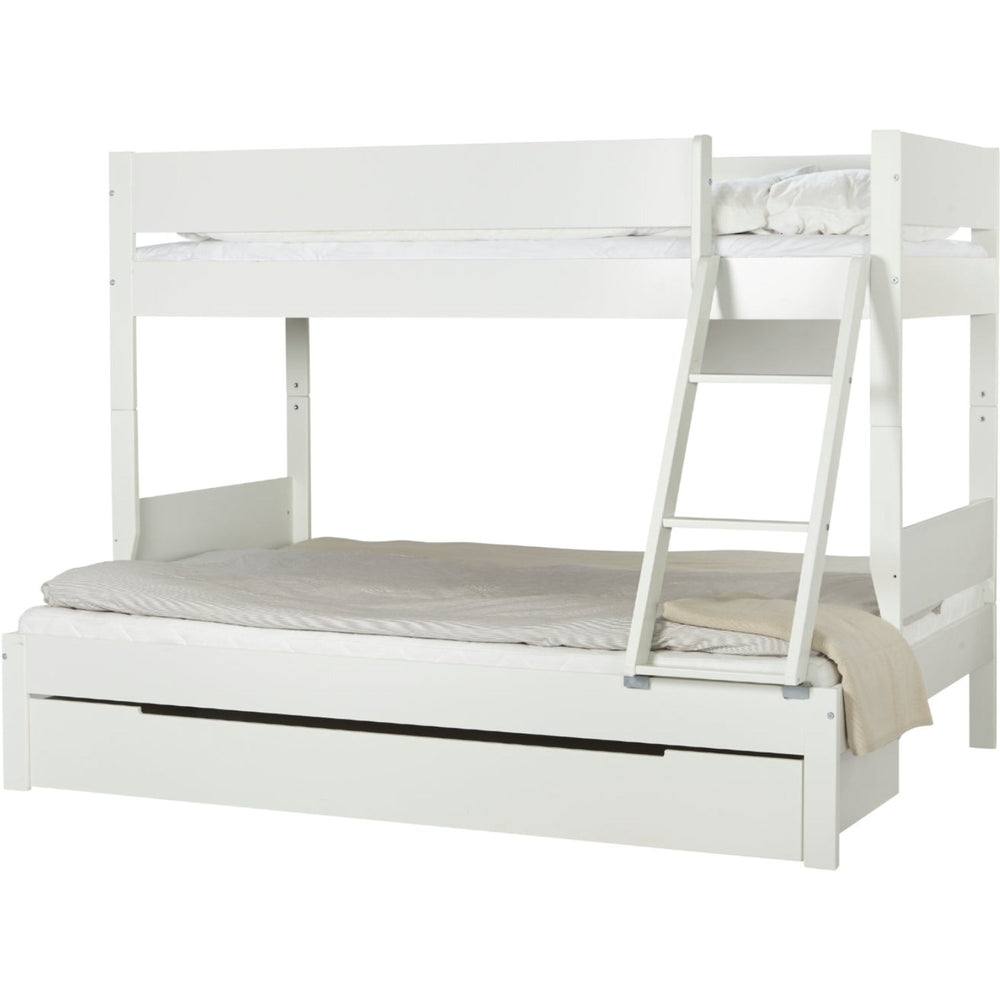 Introducing the Manis-h White Huxie Familieseng Bunk Bed, which blends functionality with style to create comforting, memorable spaces for your little ones. This cleverly designed bed features a spacious top bunk at 90x200 cm and an even more ample bottom at 140x200 cm, ensuring a safe and adaptable sleep setup for daily use and guest accommodations. Perfect for children's rooms or as an elegant addition in a vacation home, the Huxie bed enhances any space with its stylish appearance and ergonomic design.
