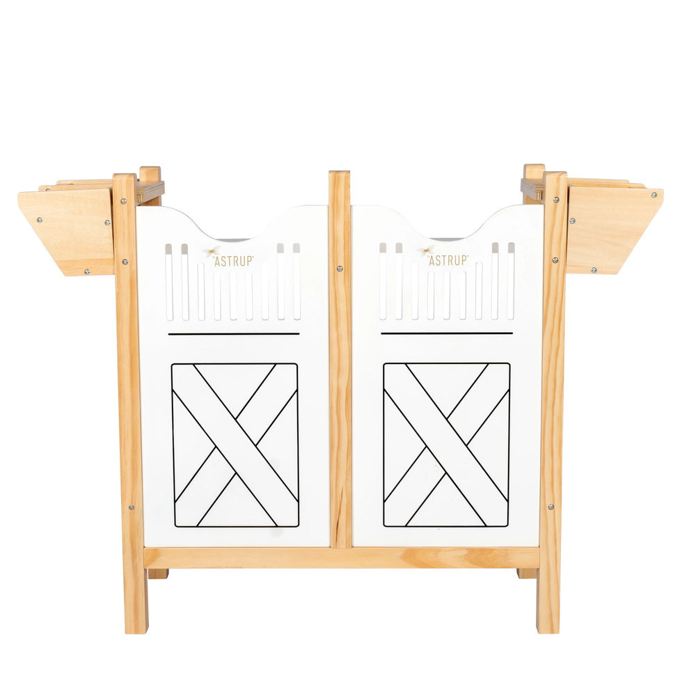 Delight your little equestrians with the byASTRUP® Horse Box, designed to house and organize up to four hobby horses with ease. This robust storage solution comes furnished with 2 feed troughs/hay racks, ensuring your child's hobby horses are well catered for while promoting a tidy play area. Crafted from durable materials, the unit is built to resist the rough and tumble of playtime, while its non-opening door keeps the hobby horses secure, yet readily accessible for grooming and interactive play. Its sleek, Nordic design not only ensures it blends seamlessly into any room, enhancing the decor, but also makes maintenance simple. Lightweight and easy to handle, this horse box also supports easy portability and storage, making it an excellent addition for both homes and educational institutions. Experience the blend of functionality, style, and educational value, perfect for nurturing responsibility and organization skills in young hobby horse lovers.
