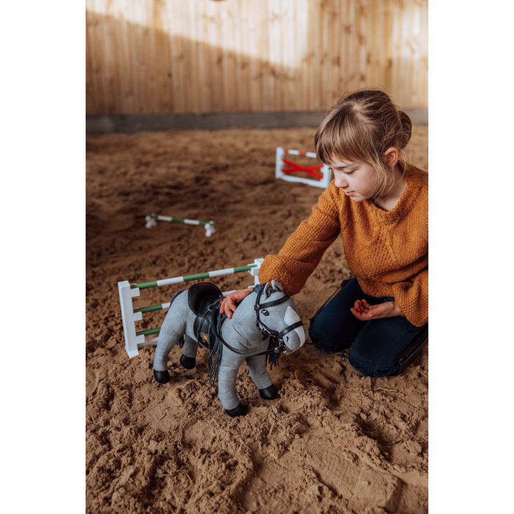 The compact size ensures easy portability and storage, while its simple assembly enables children to set up their equestrian course without hassle. Ideal for children passionate about ponies, this accessory stimulates educational play, encouraging coordination and strategic thinking as they navigate their cuddly ponies through an intricate obstacle course.