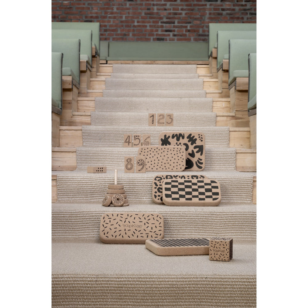 Delight your child with the by KlipKlap Stepping Stones, the perfect addition to any playroom that transforms everyday spaces into thrilling landscapes of adventure and creativity. Ideal for children of all ages, these eco-friendly stepping stones are crafted from 100% cork and natural rubber, providing a safe, antibacterial, and skid-proof platform that encourages balance, coordination, and active play.