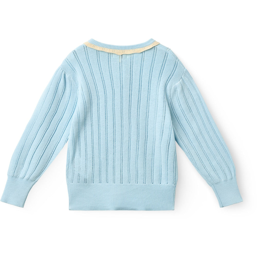 COPENHAGEN COLORS Ice Blue/Cream Comb. Knitted Pointelle Cardigan - 80 is backordered and will ship as soon as it is back in stock.