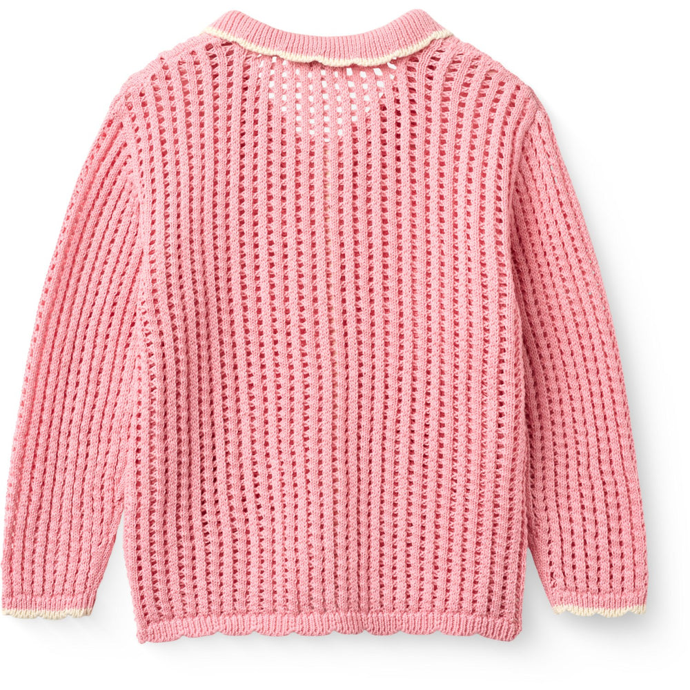 Wrap your little one in cozy elegance with the Copenhagen Colors Pink W Cream Crochet LS Cardigan. Expertly crafted from 100% cotton, this cardigan offers soothing comfort with its open-knit texture, ensuring breathability and softness. Enhanced with charming features like front buttons, dual small pockets, and delicate blue and white edging along the collar, cuffs, and pockets, it boasts a playful yet stylish look. Ideal for layering, this cardigan's classic design and vibrant hue make it versatile for everyday wear while keeping your child comfortably chic. Materials: 100% Cotton Certifications: Gots