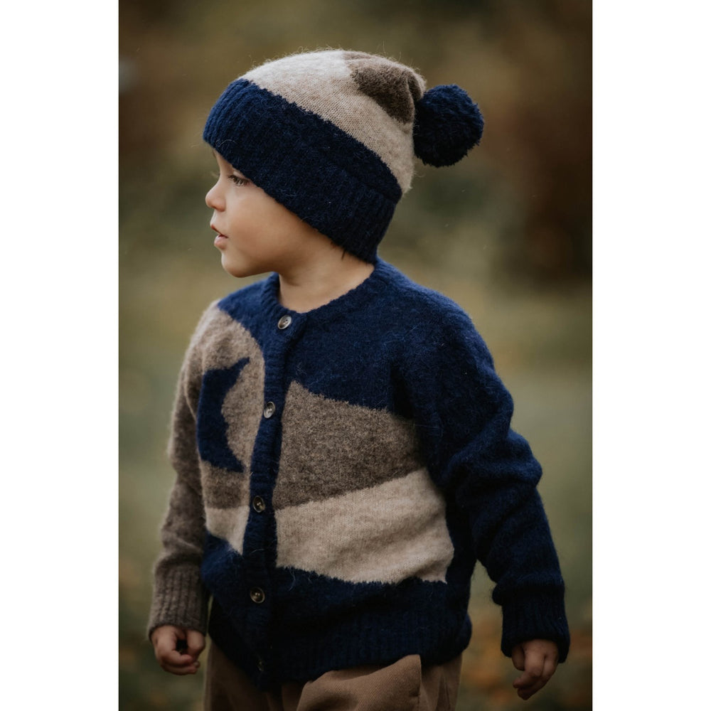 Wrap your little one in cozy sophistication with the Fliink Pine Bark Star Moon Cardigan. Thoughtfully crafted from a luxurious blend of 33% alpaca and 32% wool, this cardigan provides unparalleled warmth and softness. Featuring a striking color block design enhanced with lines and a charming moon motif, it marries style with whimsy. It's easy to wear, thanks to front buttons and snug double ribbing at the neckline, alongside ribbed hem and cuffs for a perfect fit. Designed for both comfort and durability, it requires hand washing and drying flat to maintain its quality and feel. Available in a range of sizes, this cardigan ensures your child stays warm while looking adorable in any setting.