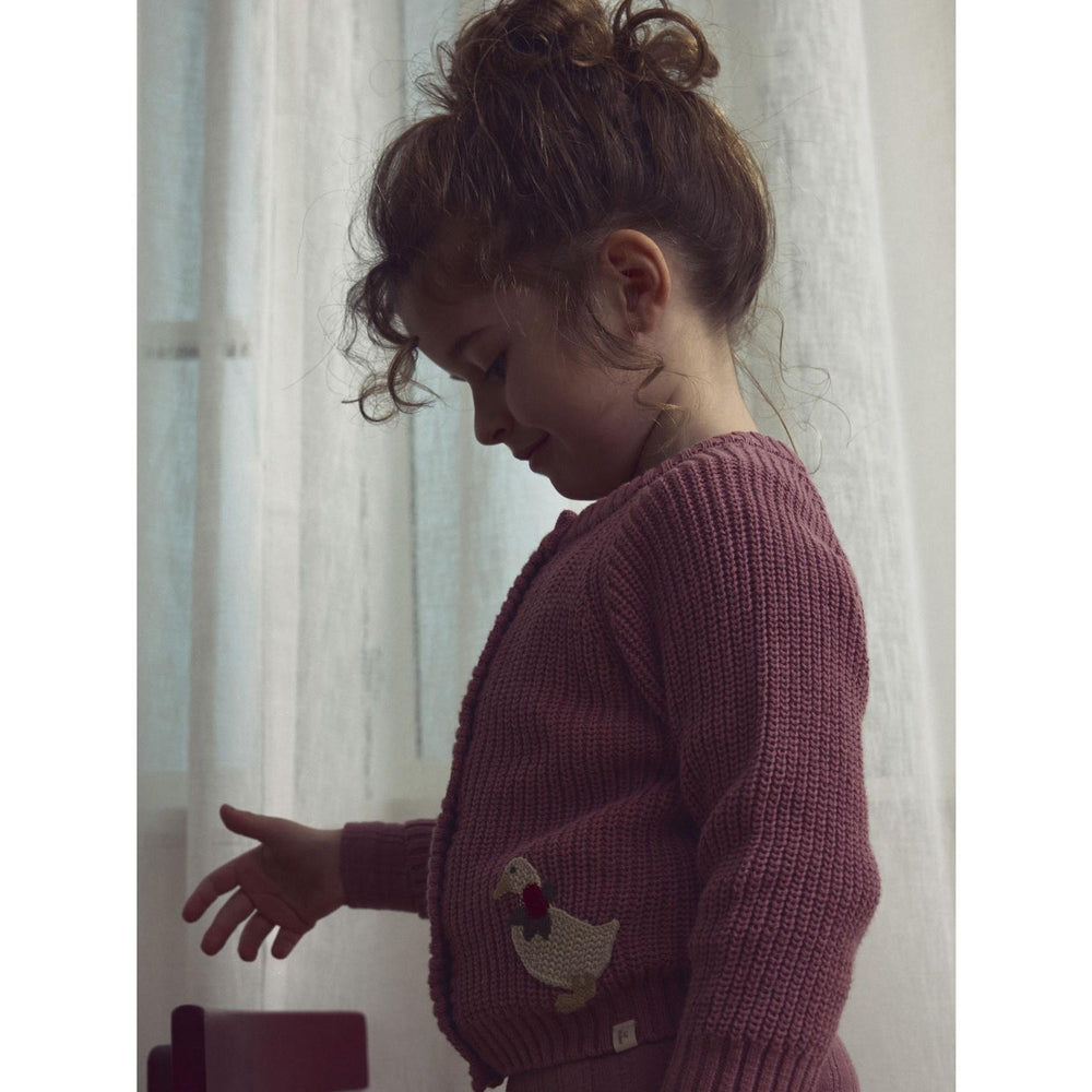 Dress your little one in the Lil'Atelier Nostalgia Rose Nmfemlen Lak Ls Knit Card for a blend of style and comfort. This charming cardigan is crafted from soft, open-knit fabric that ensures a cozy, comfortable feel all day long. It features a classic grandad neck, long sleeves with ribbed cuffs, and a secure button fastening. The regular fit and detailed rib hem enhance the overall look, while the elegant rose color and subtle label and badge details add a touch of sophistication. Ideal for both casual and dressier occasions, this cardigan keeps your child looking fashionable and feeling great. Suitable for regular wear, it’s easy to care for and promises to maintain its charm wash after wash. Closure: Button Fit: Regular Materials: 80% Cotton - Organic, 20% Cotton - Recycled Washing instructions: Maximum Washing Temperature 40°C - Normal Process Extra: The main material in this product contains a minimum of 50% organic cotton. Organic cotton is grown without the use of harmful chemicals. Organic cotton farming protects natural resources and biodiversity.