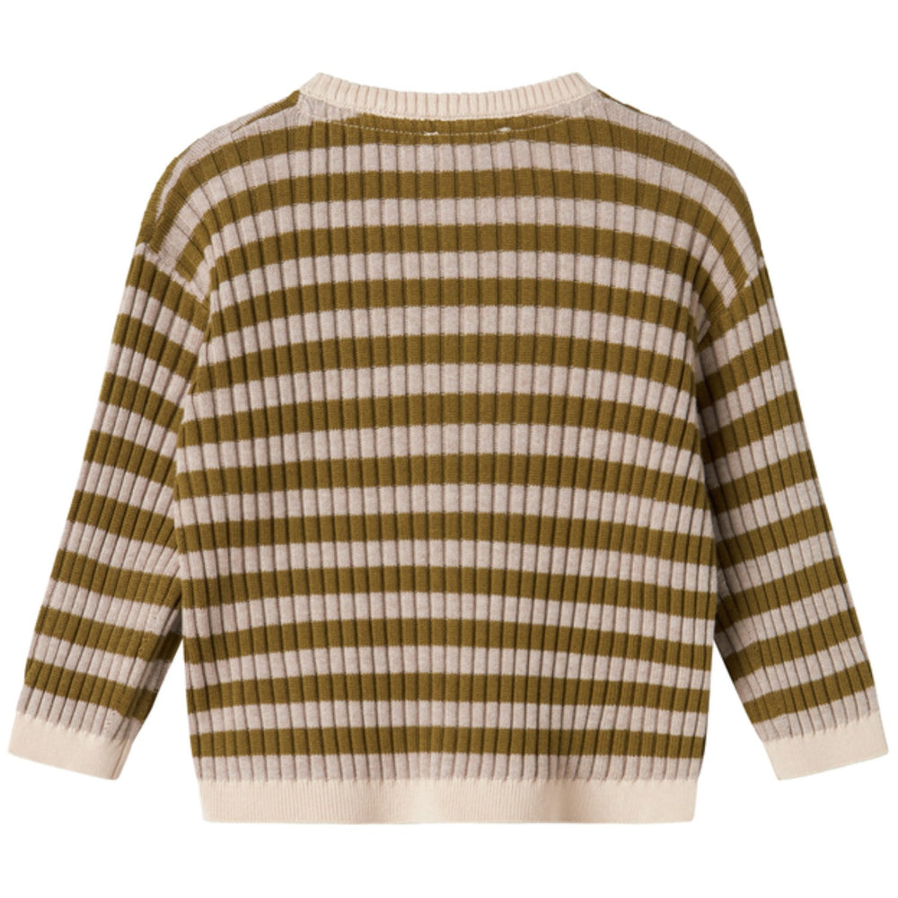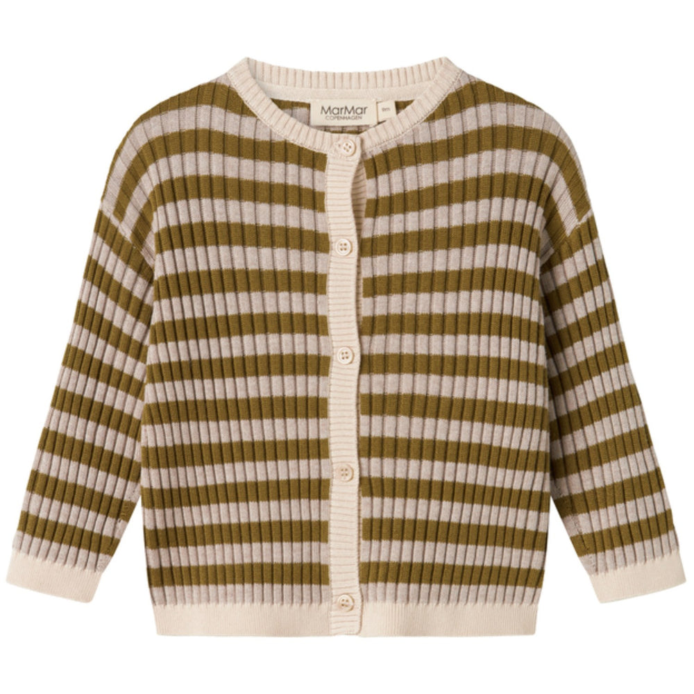 Dress your little one in comfort and style with the MarMar Modal Mix Stripe Cashew Mel. Stripe Tob Knit Cardigan. Designed with a classic striped pattern and a sleek front button closure, this cozy knit cardigan is crafted from a soft modal blend, ensuring comfort and durability. Available in a warm cashew melange color, it suits various outfits and occasions. Its flexible fit accommodates growing children, making it as practical as it is adorable. Perfect for layering during cooler days, this cardigan delivers both style and warmth effortlessly. Materials: 60% Cotton (Organic) 40% Modal Washing instructions: Wash - Machine wash 30°C gentle, Bleach - Do not bleach , Drying - Do not tumble dry, Ironing - low , Dry Clean - Dry clean possible Certifications: Organic cotton, BSCI Very soft and light cotton/modal knit Stripe details Soft and stretchy Retains shape and color