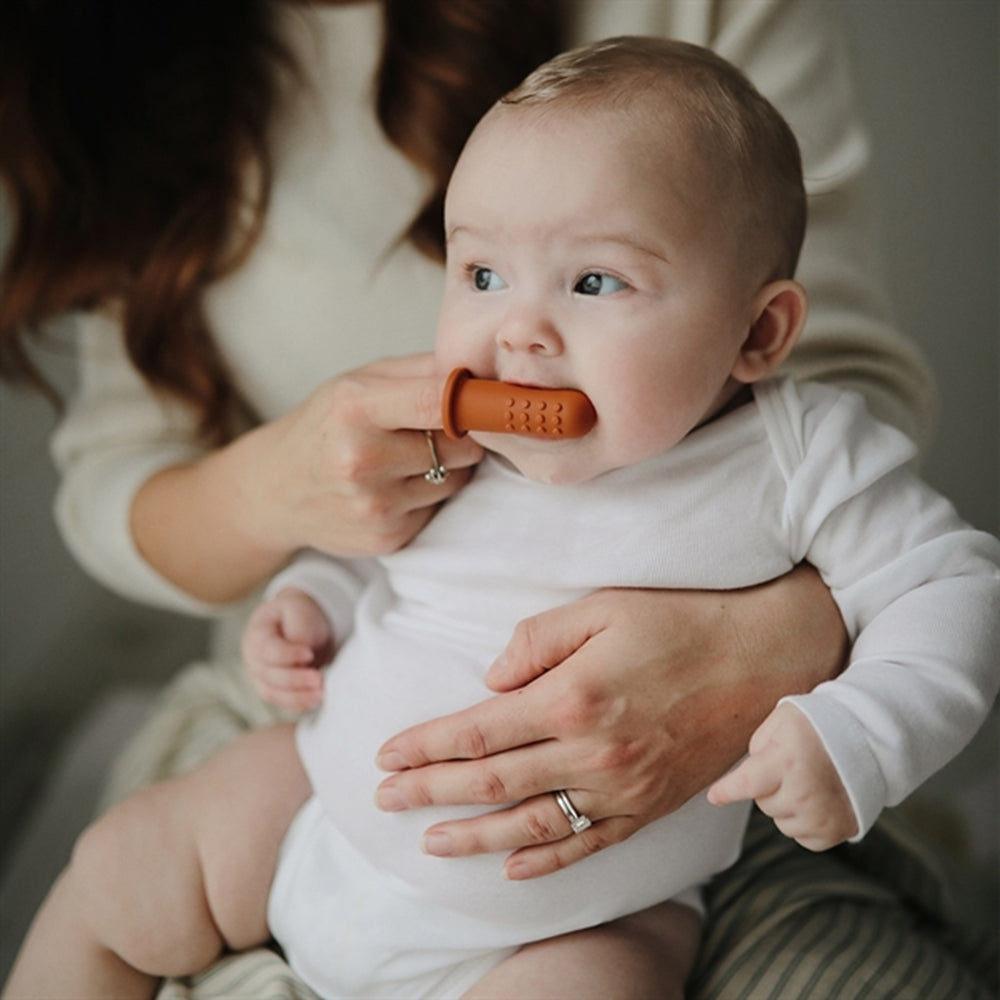 Discover the joy of teaching your little one dental hygiene with the Mushie Finger Toothbrush 2-pack. Crafted for comfort and ease of use, these toothbrushes are made from soft, BPA-free silicone that gently cleans baby’s teeth and gums. Perfectly designed for tiny mouths, this dual-pack in soothing Clay and Shifting Sand hues ensures hygiene and stimulation during teething. Designed to be both durable and easy to clean, these brushes promise a soothing experience for infants while easing parents' minds about safety and maintenance.