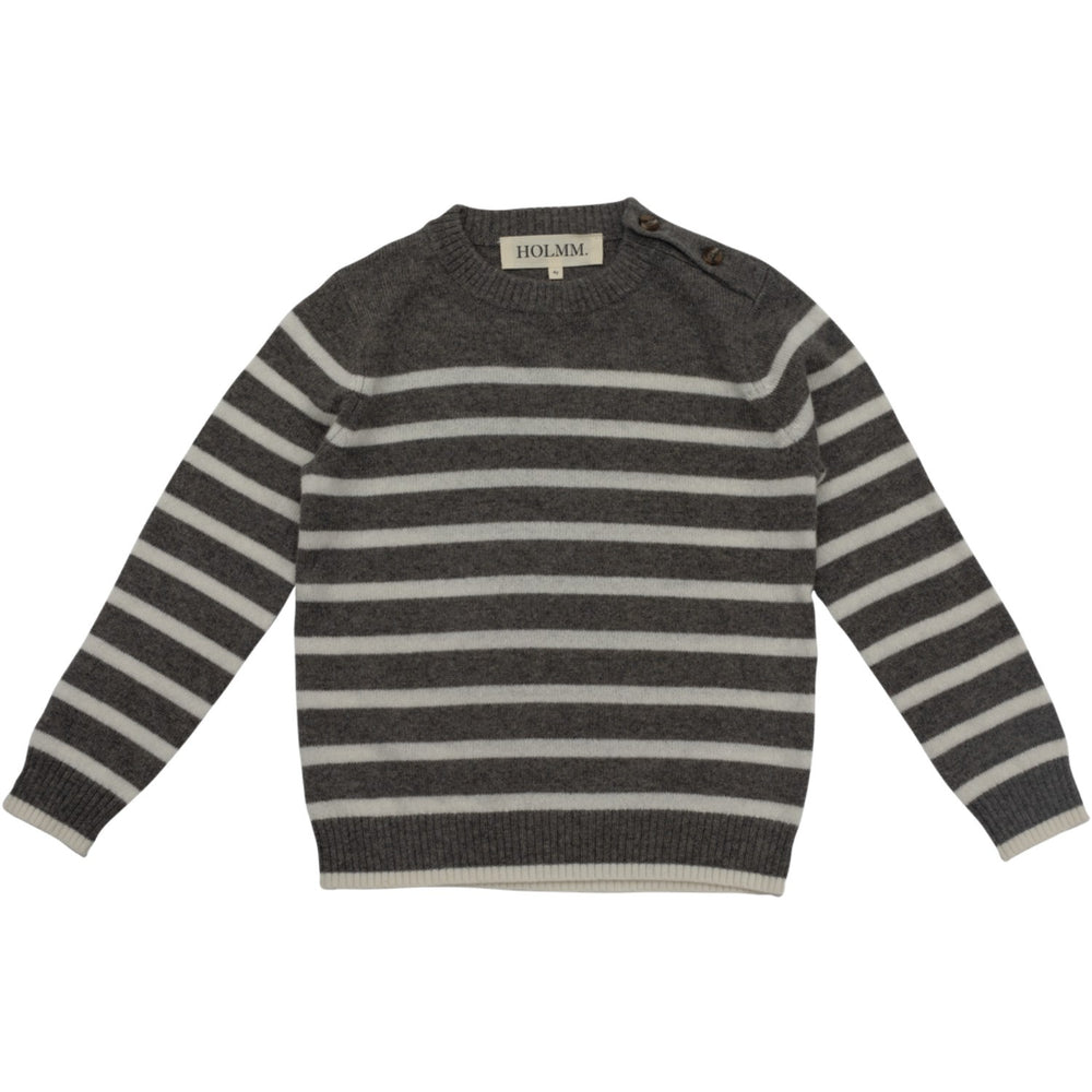 Discover cozy elegance with the HOLMM Otter Obay Cashmere Knit Sweater, a gorgeous addition to any child's wardrobe. Crafted from luxurious, medium-gauge 100% cashmere yarn, this Breton-striped jumper exudes comfort and premium quality. Featuring a classic crew neckline accented with distinctive HOLMM-branded buttons on the shoulder, it blends traditional style with modern flair. The design stands out with its bold, contrasting stripes that draw inspiration from nautical themes, adding a playful yet sophisticated touch. The smart, ribbed cuffs and hems are delicately color-tipped, enhancing the overall aesthetic of the garment. This sweater is tailored to suit everyone in the family, from the youngest babies to Great-Grandparents, and is thoughtfully designed to fit both male and female body types. Not only is this sweater stylish, but it also prioritizes wearability and comfort, ensuring that it can be worn on various occasions without sacrificing ease. The cashmere material promises durability and easy care, making it a practical choice for busy families. Ideal for family outings, seasonal gatherings, or cozy evenings at home, the HOLMM Otter Obay Cashmere Knit Sweater offers warmth, style, and a touch of luxury for your little one's daily adventures.