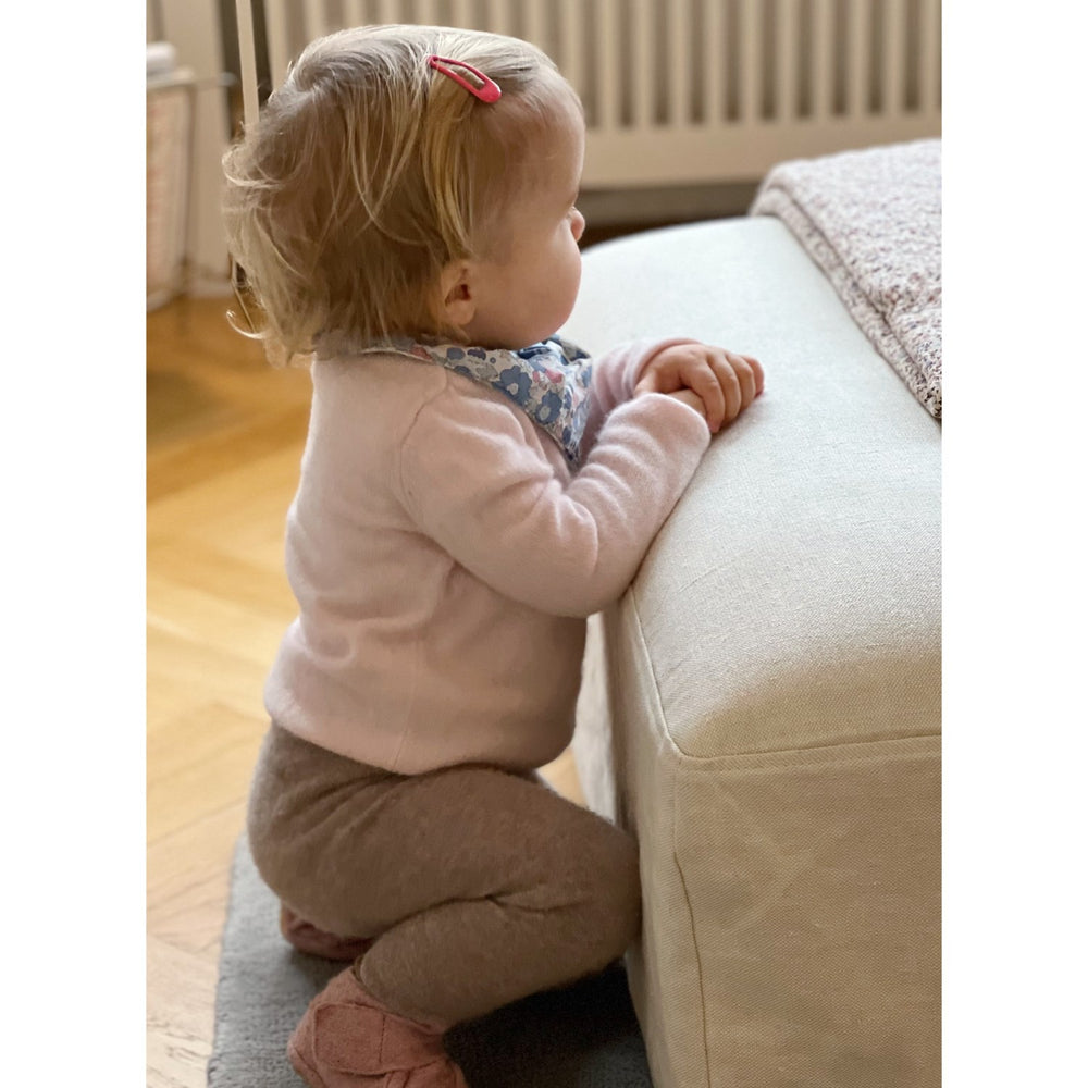 Discover the delightful touch of the HOLMM Powder Billy Cashmere Knit Sweater, meticulously crafted from 100% cashmere, known for its luxurious softness and excellent heat-regulating properties. This finely knitted sweater ensures that your child stays comfortably warm without overheating, perfect for varying climates. Featuring a classic crew neck, the design is enhanced with practical shoulder button fastenings, crafted from eco-friendly corozo buttons, simplifying dressing for babies aged 3 to 24 months.