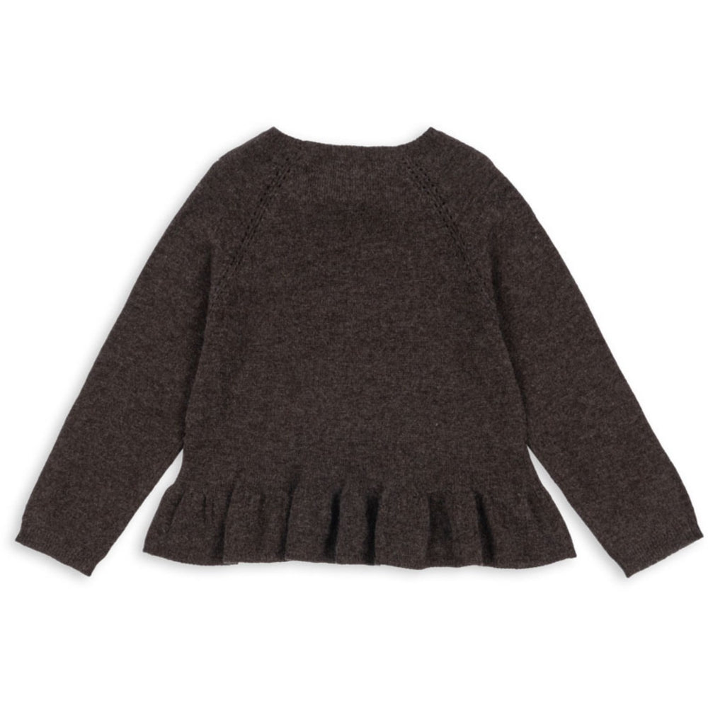 Introduce your child to the cozy charm of the Konges Sløjd Brown Melange Cathy Knit Sweater. Crafted from a luxurious blend of 60% wool, 20% acetate, and 10% cashamine, this sweater combines warmth and softness. The elegant peplum waist and classic ribbed hems add a stylish flair, making it a delightful choice for both comfort and style. Perfect for crisp autumn walks or chilly indoor playdates, its lightweight design ensures your child remains comfortable without compromising on warmth. The earthy brown melange color and chic knit pattern effortlessly match any outfit, turning everyday wear into something special.