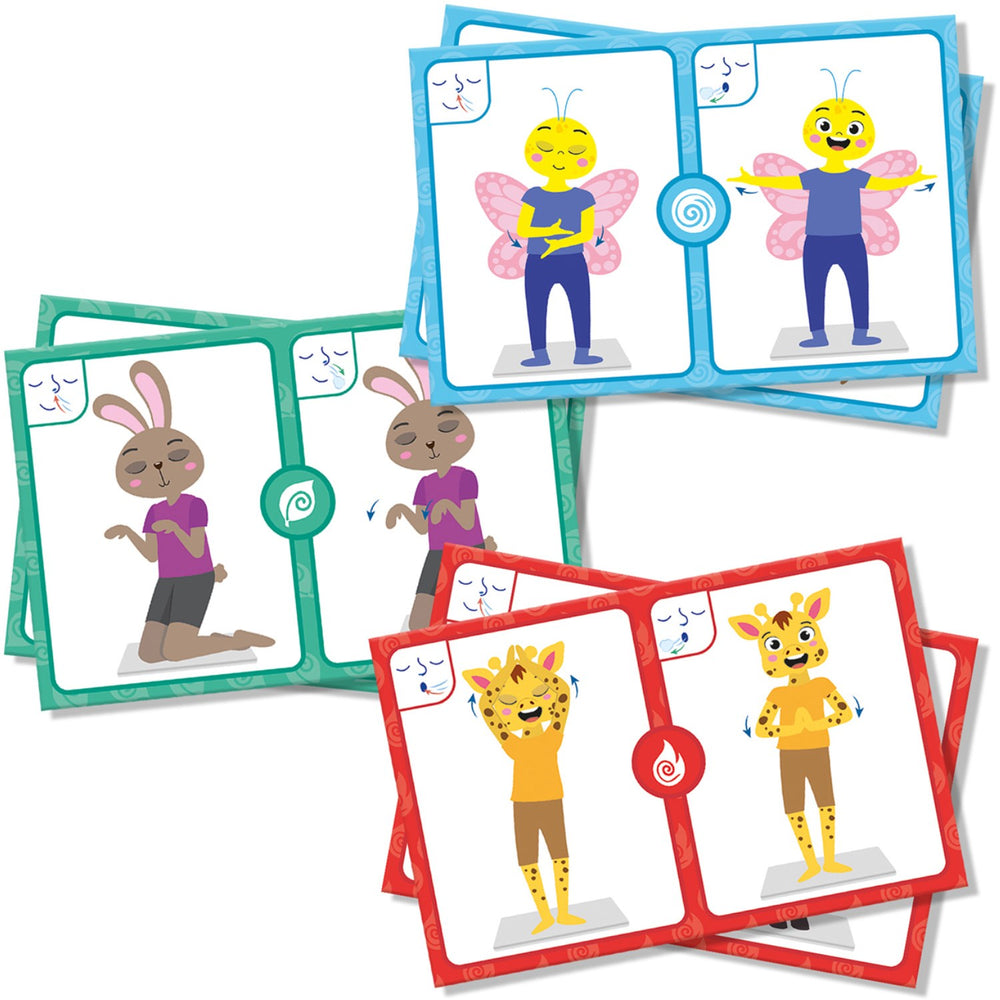 The set includes 28 unique cards with breathing exercises and yoga poses to help control one's emotions