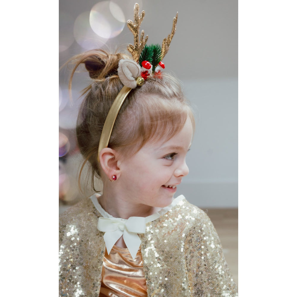 Discover the charm and festive spirit with our Great Pretenders Holiday Rudolph Headband, perfectly crafted for your little ones' joyful celebrations! This adorable costume accessory is designed with children’s safety and comfort in mind, featuring soft, child-friendly materials without small parts to ensure a safe play experience.