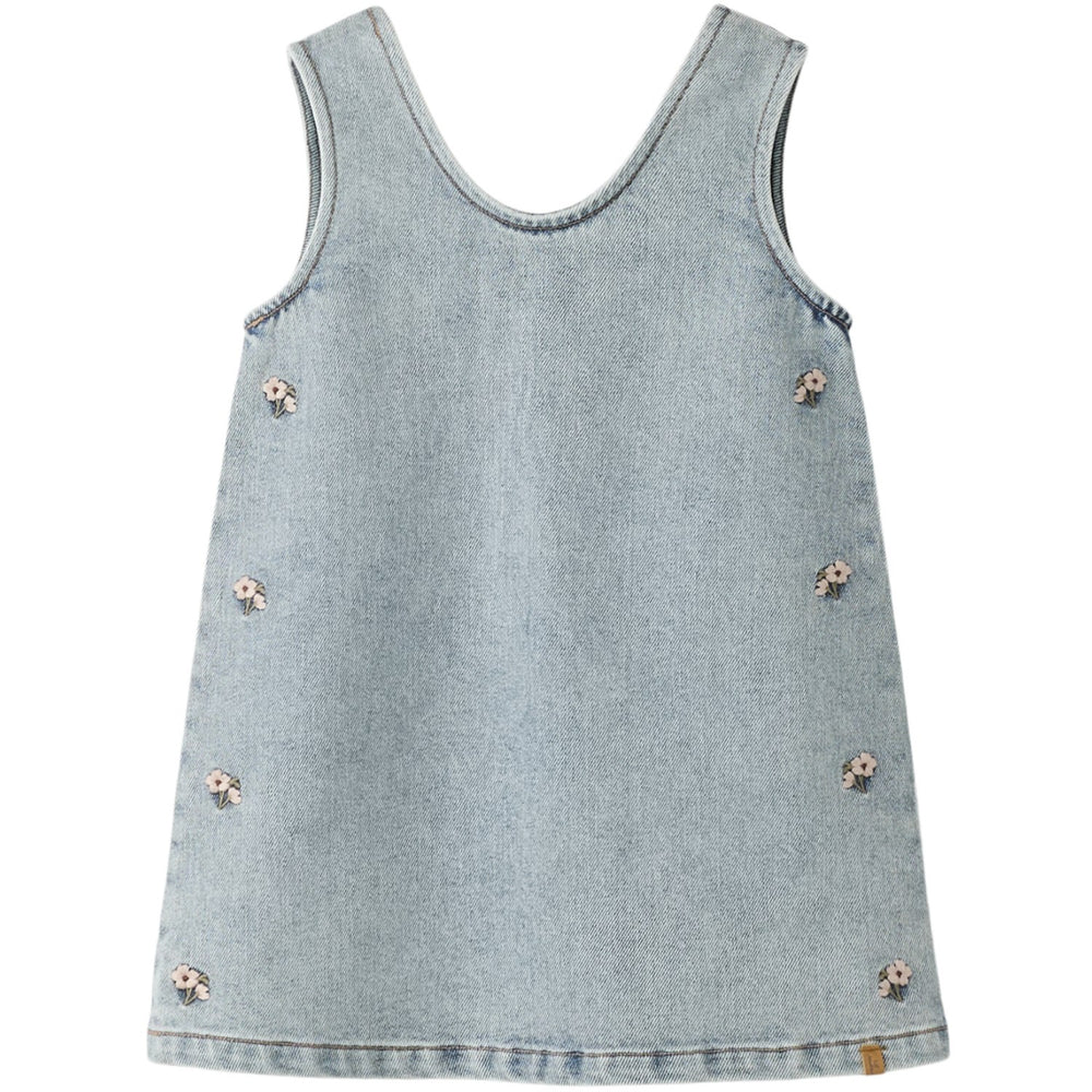 Discover the charm of the Lil'Atelier Medium Blue Denim Flower Emb Nmfdarlee Doa Dnm Spencer, a delightful addition to your child's wardrobe. Crafted from sturdy denim in a striking medium blue, this sleeveless Spencer dress features a versatile V-neck design and eye-catching floral embroidery. The snow wash finish gives it a unique, faded look, enhancing the fabric's texture and adding a playful touch. Designed for comfort with its regular fit, this dress is perfect for everyday wear, maintaining its style and quality wash after wash. Perfect for pairing with leggings or wearing alone on warmer days, it promises to keep your little one both stylish and comfortable.