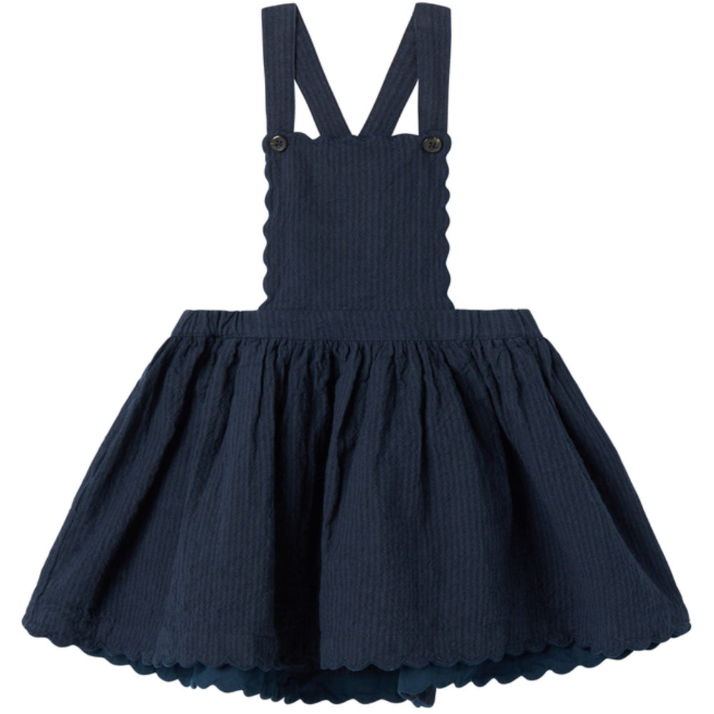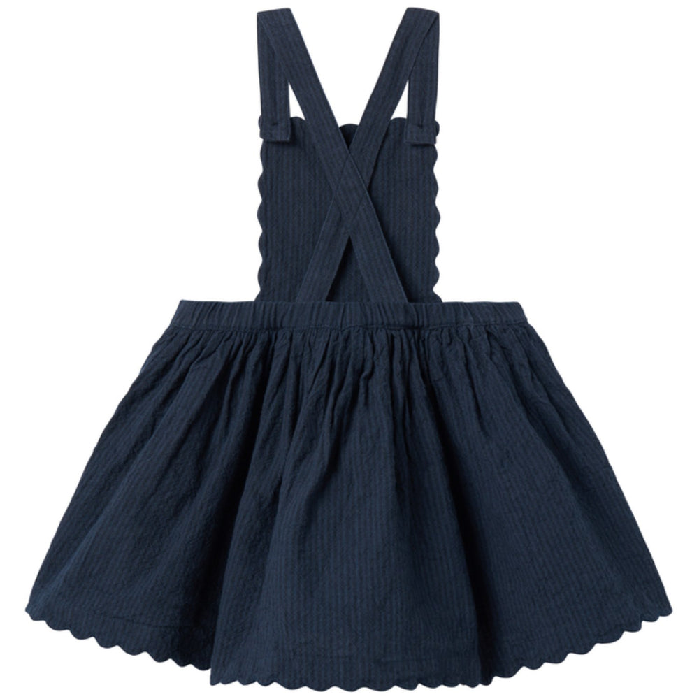 Discover the charming MarMar Chambray Danara Dress, perfect for your little one's wardrobe! This dark blue striped dress features a unique front button closure with crossed straps at the back, enhancing its stylish appeal. Adorned with exquisite scalloped embroidery on the chest and hem, it adds a touch of elegance. Crafted to sit above the knee, this ensemble combines fashion with comfort, making it ideal for various occasions. Easy to care for and designed for lasting wear, it's a delightful choice that promises both style and ease. Materials: 100% Cotton Washing instructions: Wash - Machine wash 40°C extra gentle, Bleach - Do not bleach , Drying - Do not tumble dry, Ironing - medium, Dry Clean - Do not dry clean Certifications: BSCI Chambray denim in 100% cotton Yarn dyed stripes Quality that patinates nicely and lasts wash after wash Breathable quality Keeps its shape and colour Oeko-tex® - Tested for harmful chemicals