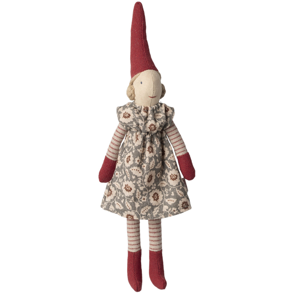 Introduce your little one to the enchanting world of Maileg Pixy! This delightful Size 1 rag doll, dressed in a charming winter mint dress, brings the magic of Christmas to playtime. Crafted from exquisite materials, she features magnets in her hands and left foot for interactive play. Perfectly sized for young children, this doll promotes imaginative play and is easy to carry and store for endless adventures. Her high-quality construction ensures durability and easy maintenance, making her a joyous addition to any child's toy collection.